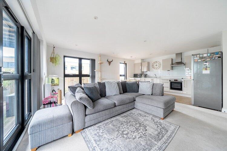 This bright, modern, well-decorated two-bedroom apartment is now available in Welwyn Garden City through Shared Ownership. The property on the second floor comprises an entrance hall, a living room with a modern open-plan kitchen, two bedrooms (one en-suite), and a bathroom. Outs...