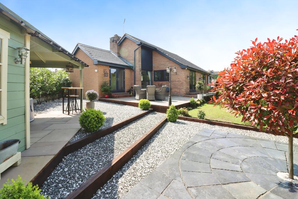 This property is a 2 bedroom, 1 bathroom detached bungalow located in Walton, Chesterfield. The property is listed at £500,000 with 806 sqft of living space and a 991 sqft plot. Recent sales of similar properties in the area range from £120,000 to £389,950, suggesting that the asking price is on the higher end of the market. However, the property appears to have undergone significant renovations, as evidenced by the high-quality finishes and modern fixtures shown in the photos. The location is convenient, with nearby schools and transportation options. The property also features a well-maintained garden and outdoor space.