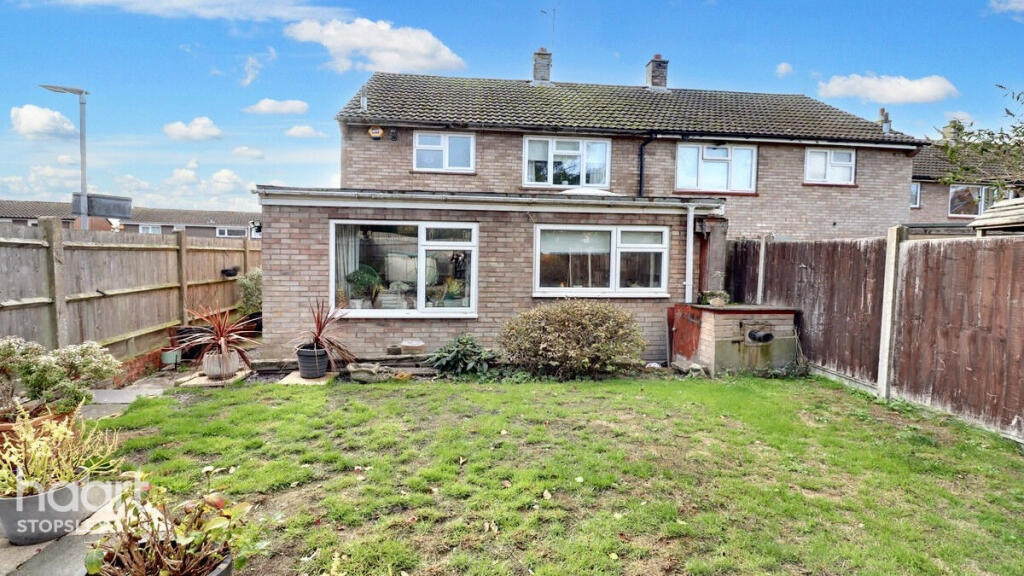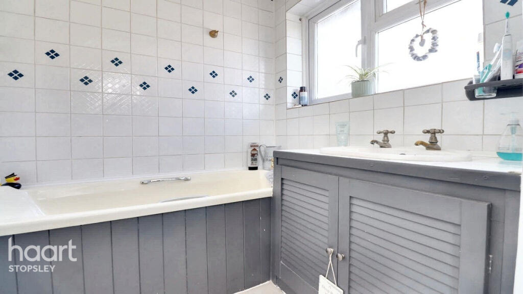 This is a four-bedroom semi-detached house located in Clarion Close, North Hertfordshire. The property has two bathrooms and a garden. The property is listed for £400,000. The average price per square foot in this area is £529, and the property size is 1,053.00 sqft. Offley Endowed Primary School And Nursery is within walking distance. Hitchin is the closest train station at 8.71 KM. The property appears to be in reasonable condition, but some aspects of the interior, particularly in the bathrooms, suggest that it could benefit from some modernisation.
