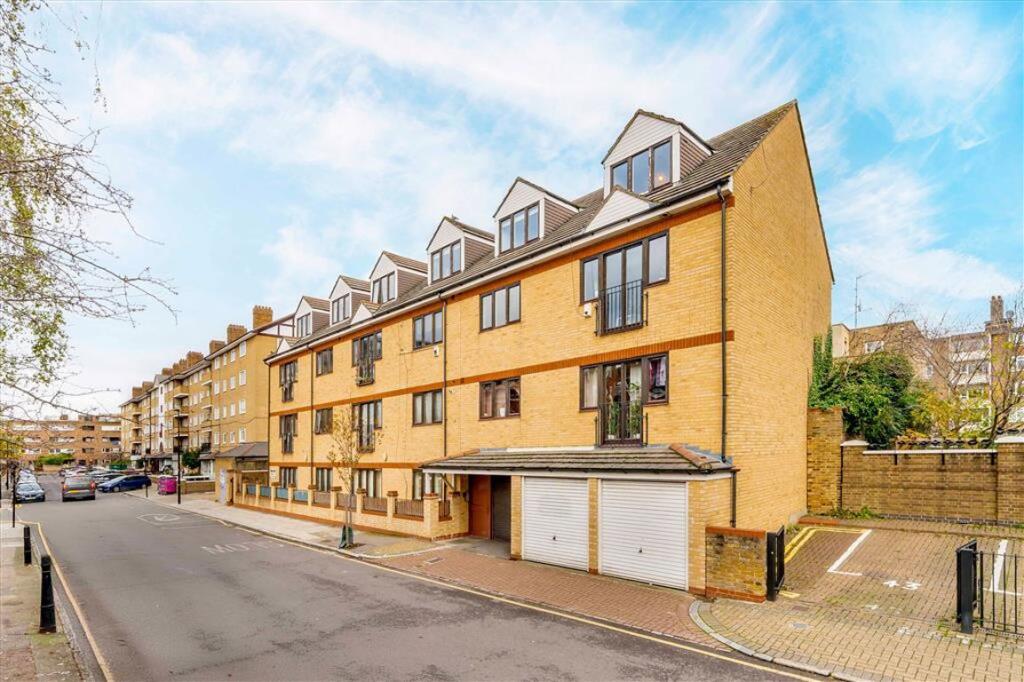 Unusually spacious two bedroom apartment in a small, gated community tucked behind Bethnal Green station parks and Roman Road. Arranged over two floors, the space is well decorated with solid oak floors in the hallway, living room and study/third bedroom. The dual aspect living area offers a br...