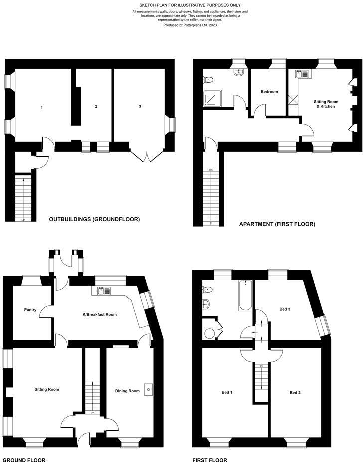*** NEW PRICE *** 3-Bedroom DETACHED HOME (128sqm/1,378sqft) with separate converted 1-Bed APARTMENT (41.50sqm/447sqft) or HOLIDAY LET, BARN/WORKSHOP etc & GARDENS - VERY PRIVATE South-west Rear Garden with GREAT VIEWS. HOUSE: Kitchen/Breakfast Room, large Pantry, Dining Room, Sitting Room, 3 dou...
