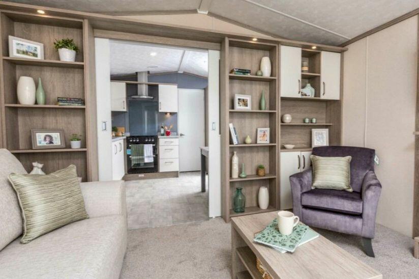 Two Bed Pemberton Regent (36x12) Large end pitch, includes composite steps. The Pemberton Regent offers a unique design for a 12 ft wide holiday home, featuring the ability to separate the lounge from the kitchen and dining area with pocket doors. These doors are cleverly hidden behind...