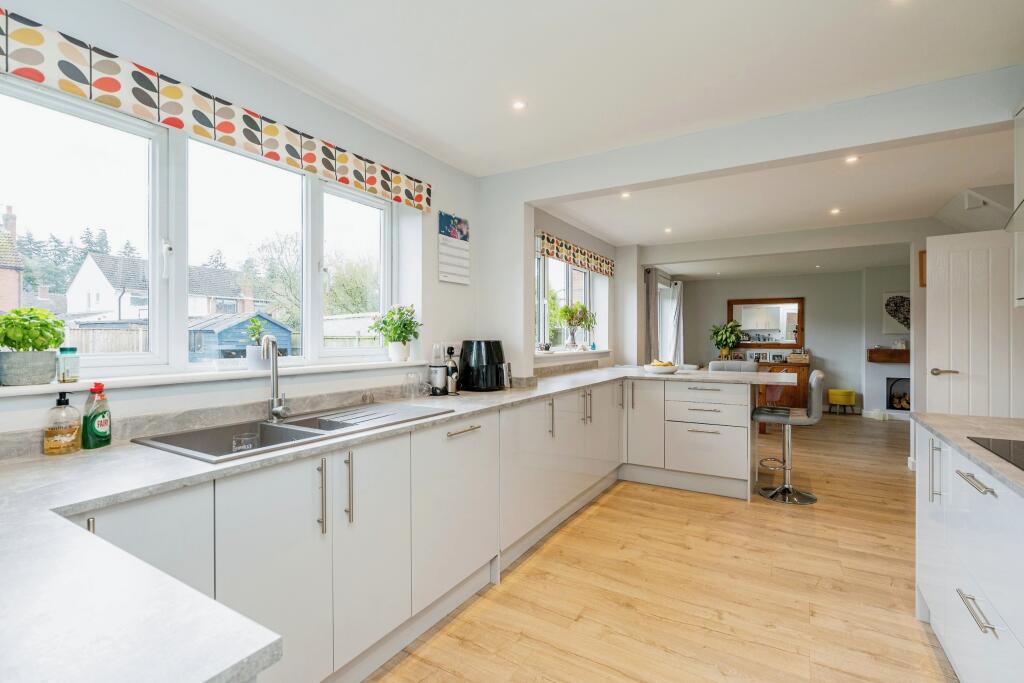 This property is a 4-bedroom, 2-bathroom detached house located on Armstrong Road in Thorpe St Andrew, Norwich. The area benefits from nearby schools such as St William’s Primary School (rated “Good” by Ofsted) and Heartsease Primary Academy (rated “Outstanding”), and is within reasonable distance of Norwich train station. The house itself appears to be in good condition, recently modernised with a contemporary kitchen and bathrooms. It features a good-sized garden, adding to its appeal. While the average price per square foot in the area is £355, this property is listed at a price that may be slightly higher than average, considering comparable properties in the area. However, the recent modernisation and the larger plot size might justify the higher price point.