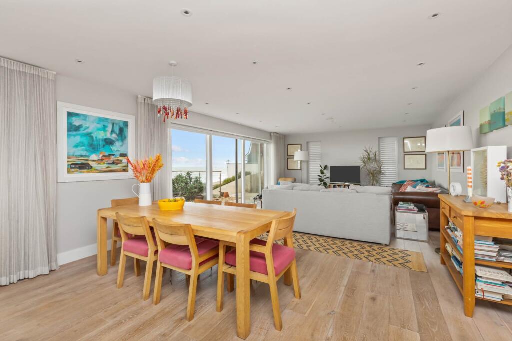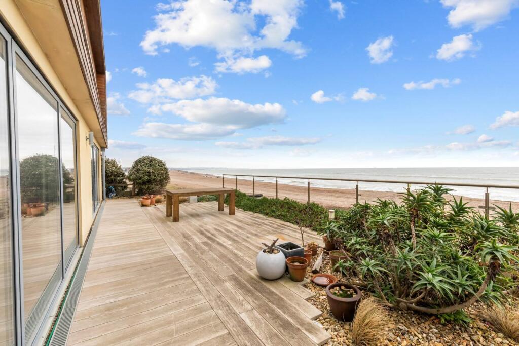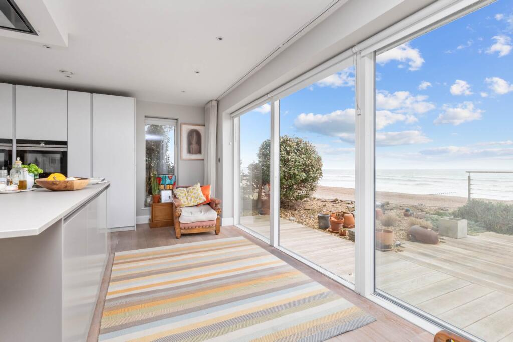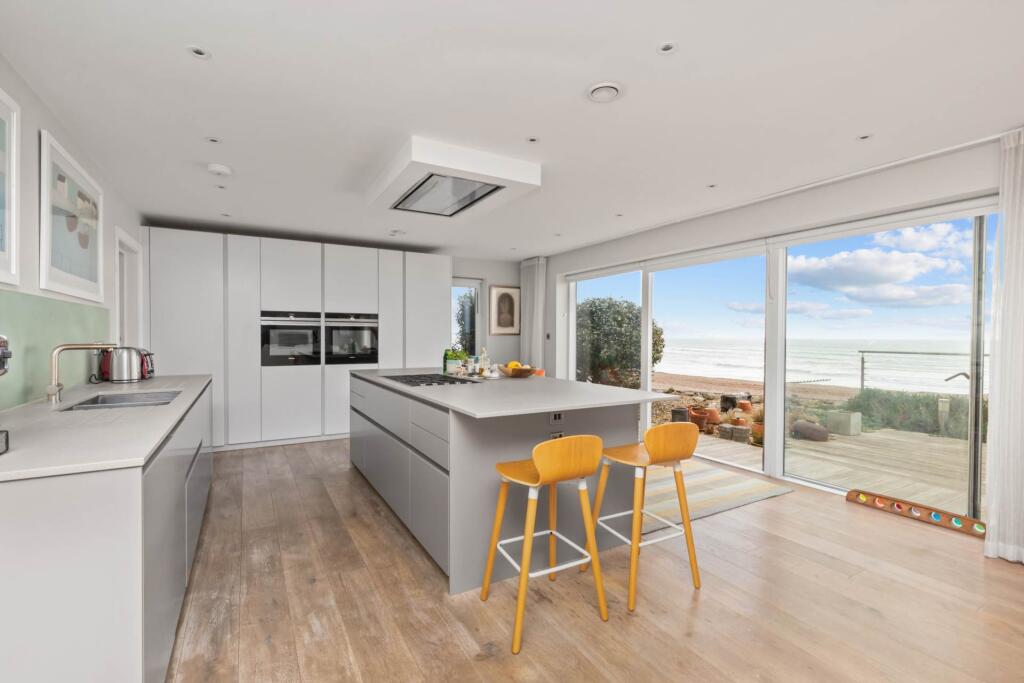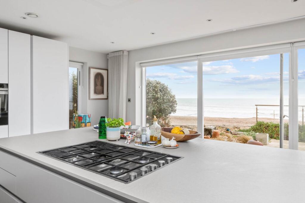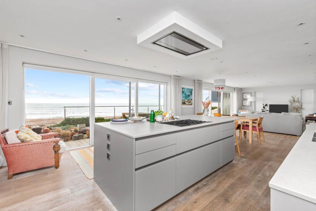 This stunning beachfront home boasts breathtaking sea views and direct beach access. The 40ft open-plan living space features floor-to-ceiling windows, a luxury kitchen, and a terrace. With three sea-facing bedrooms, eco-friendly features, and ample park, it`s coastal living at its finest.
