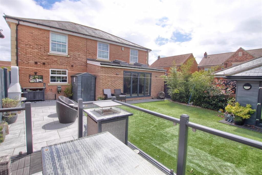 This property is a 5 bedroom detached house located in Ingleby Barwick, Stockton-on-Tees. Ingleby Barwick is a popular residential area known for its family-friendly atmosphere and good local amenities. The property itself is in excellent condition, having undergone recent renovations and extensions. The images show a modern, well-maintained interior with high-quality finishes throughout. There is a substantial rear garden with artificial turf, patio area, and a separate garden building. The location is convenient, with good access to local schools and transportation links. The asking price is above the average for the area but is justified given the size, condition, and desirable location of the property.