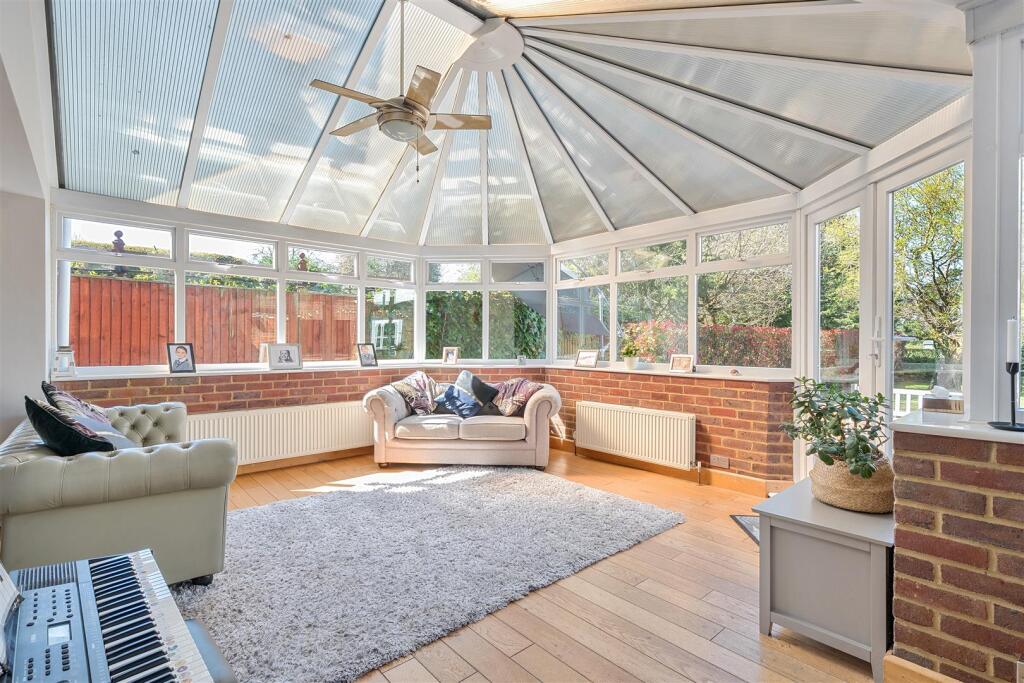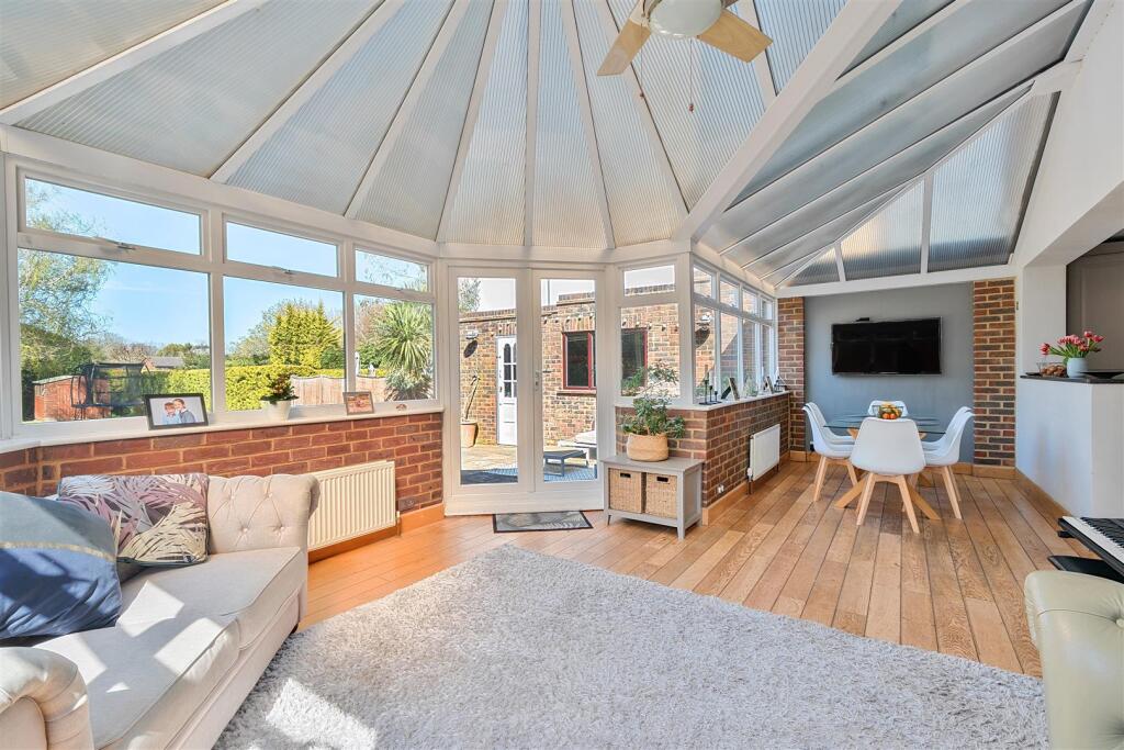 The property benefits from features including a conservatory, a fireplace, and ample parking.