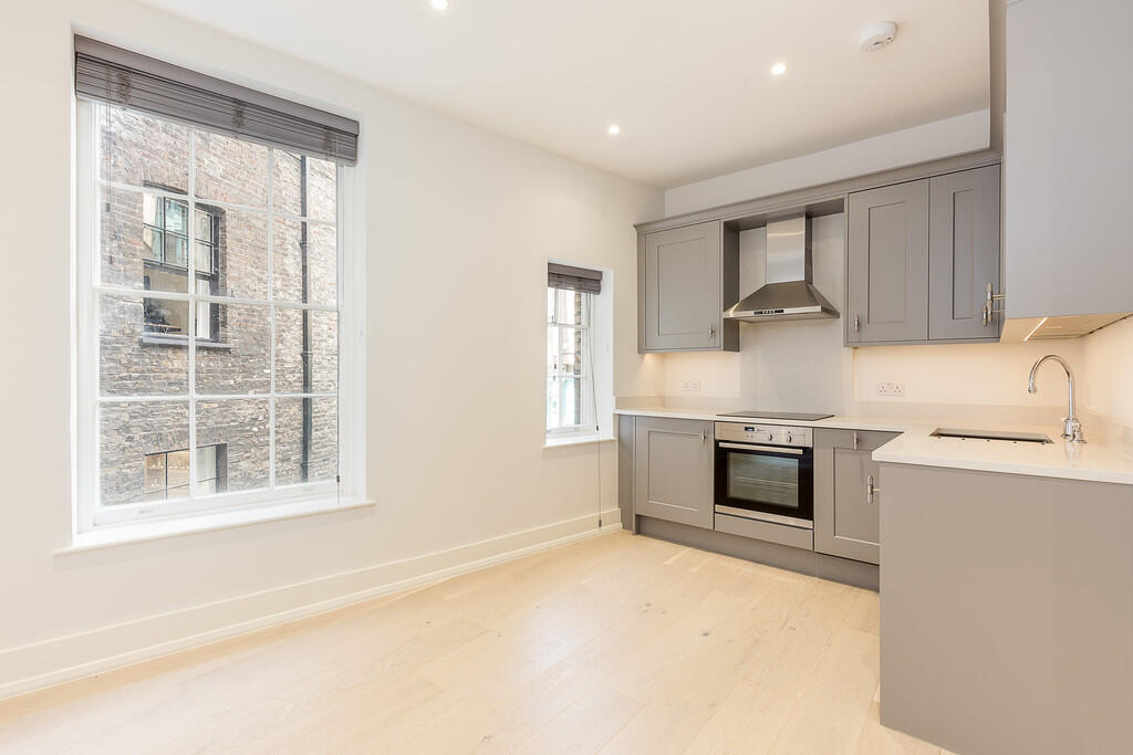 Overlooking picturesque Ching Court, this two bedroom apartment in Seven Dials is finished to a high specification with wooden floors and a smart grey open plan kitchen. Both bedrooms have ample storage and the shower room has stylish white tiles with grey grouting. Available unfurnished June.