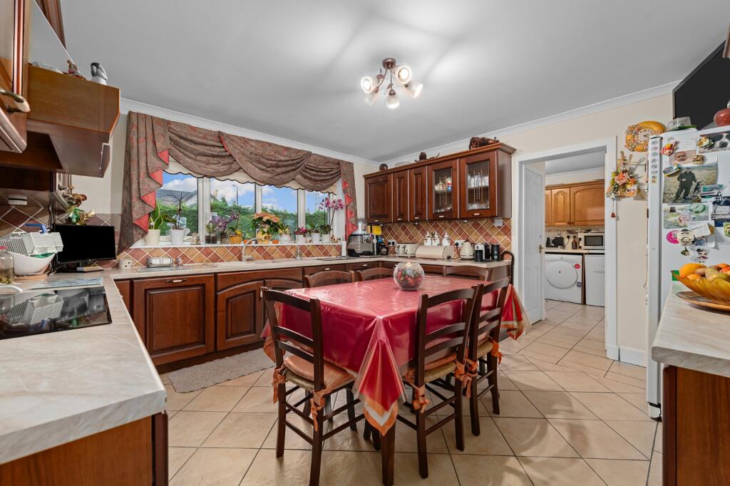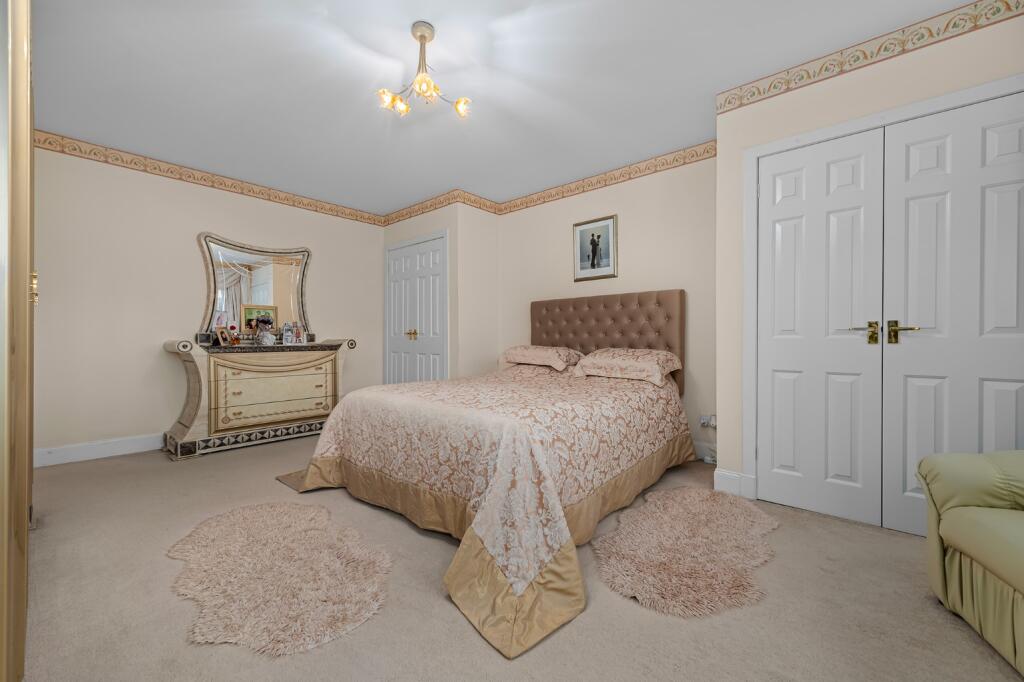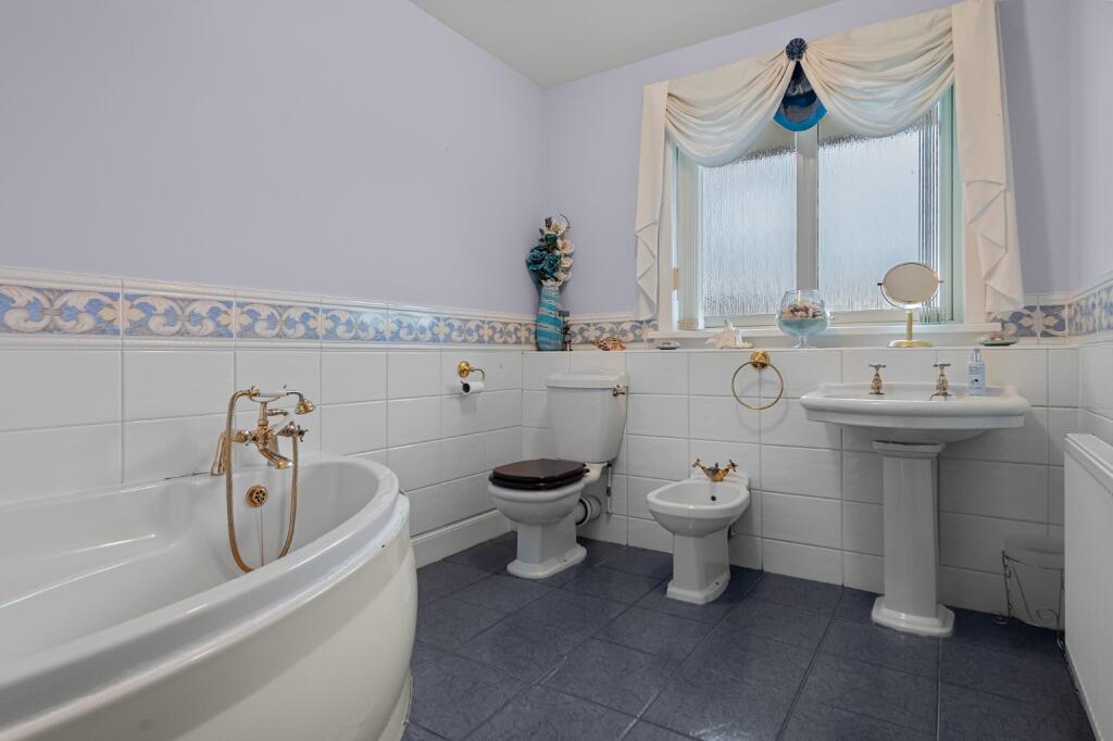 This four-bedroom, three-bathroom detached house in Inchcross Steading, Bathgate, West Lothian, offers a substantial living space. The property’s location is advantageous, with reasonable proximity to Bathgate town centre and a nearby train station. The house itself features multiple reception rooms with a classic style, though the decor might be seen as dated by some buyers. The kitchen and bathrooms appear to be well-maintained and functional, although they share similar styling with the remainder of the house. The exterior is attractive with a generous garden, including landscaping and trees. A double garage provides ample car storage. While the provided information is limited, particularly with respect to precise property sizes of nearby houses, and the average price per square foot remains unspecified, the listing price appears to be in line with comparable properties in the area, although a precise price per square foot assessment would require access to this information. Overall, the property presents a solid family home option in a convenient location; however, potential buyers should carefully consider the aesthetic style of the house as it might require modernization for contemporary tastes. The abundance of available space inside and outside the property is one of its key selling points.