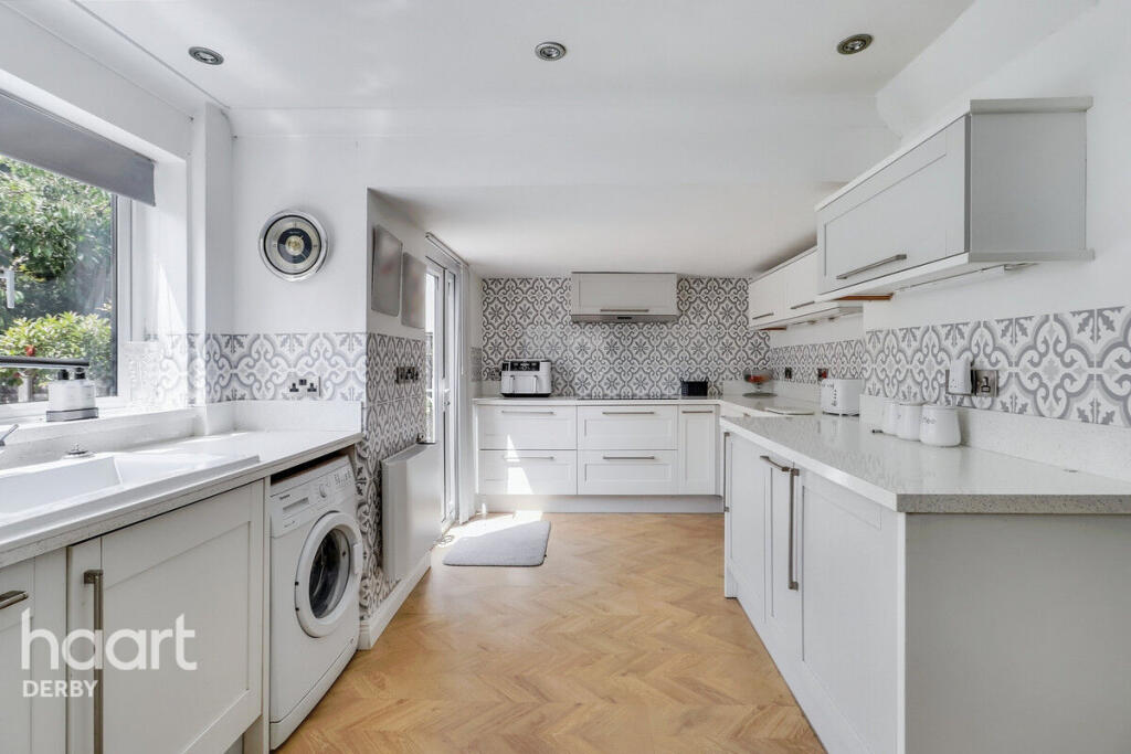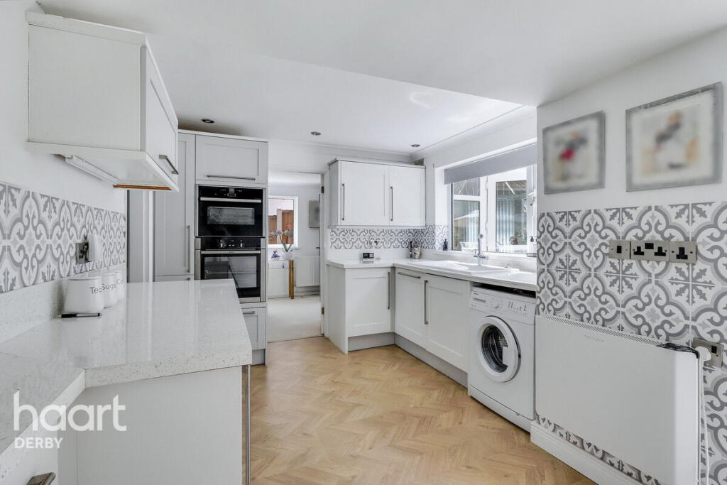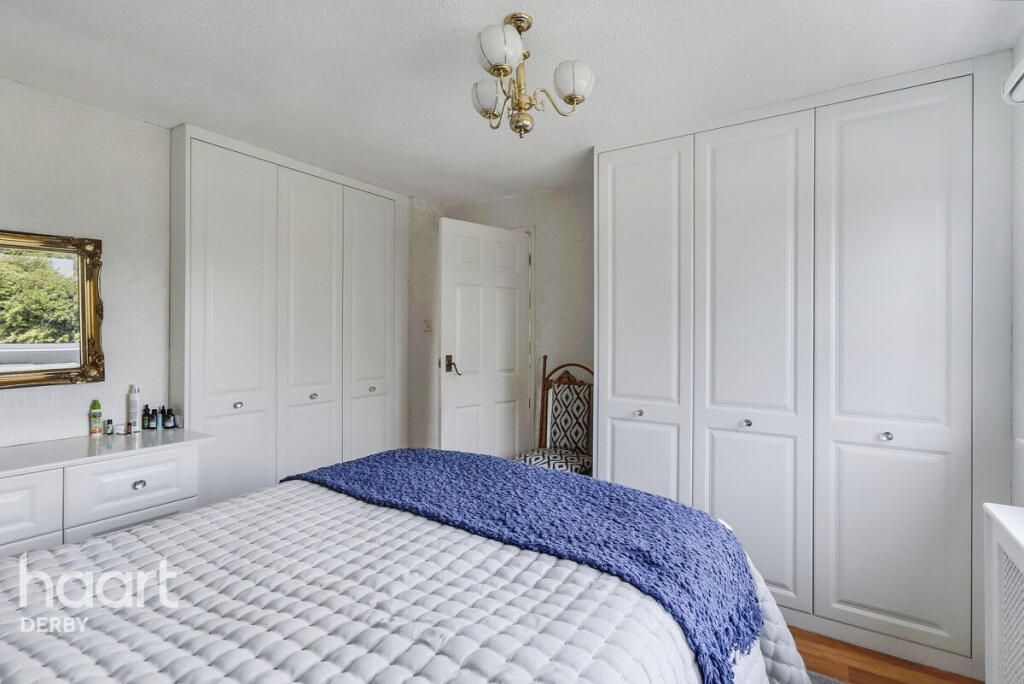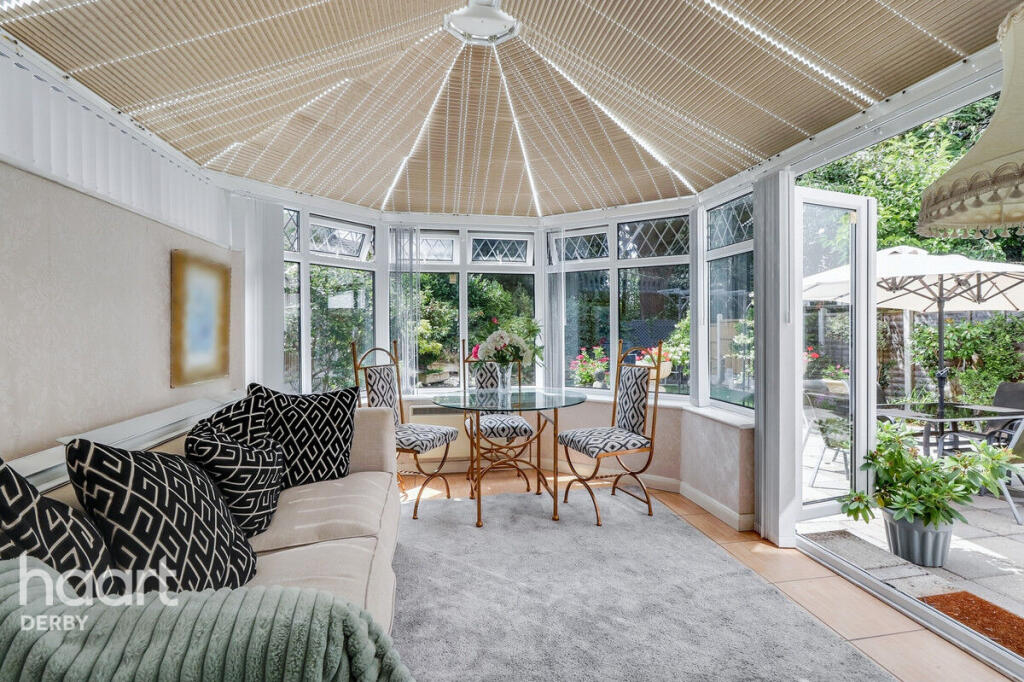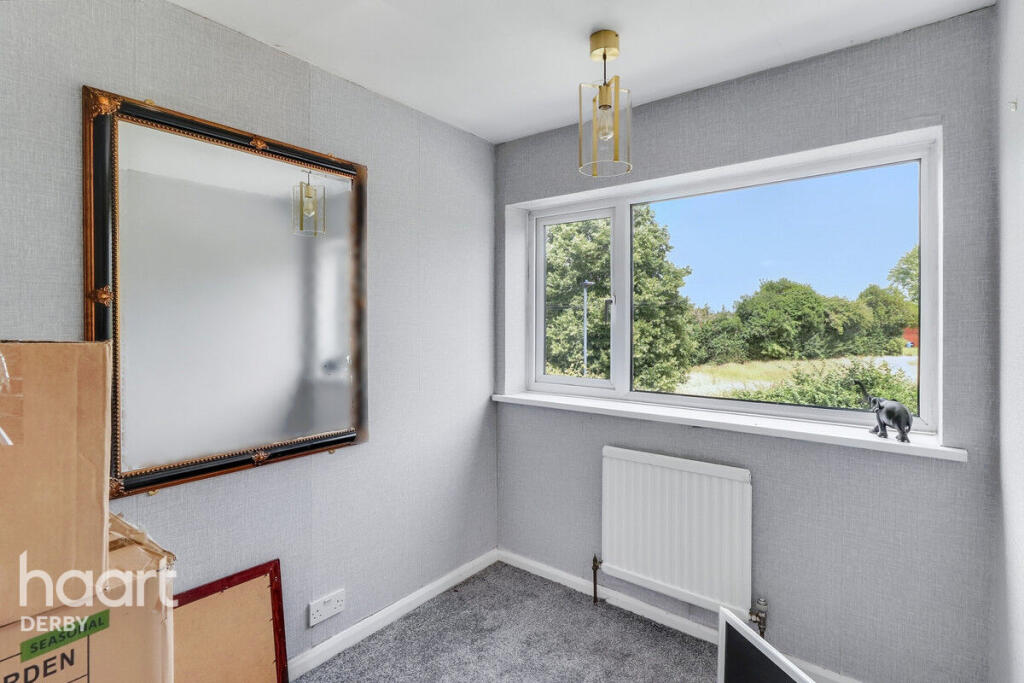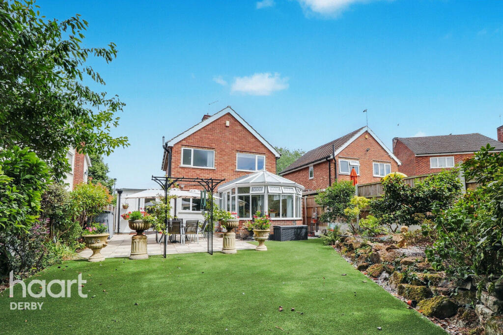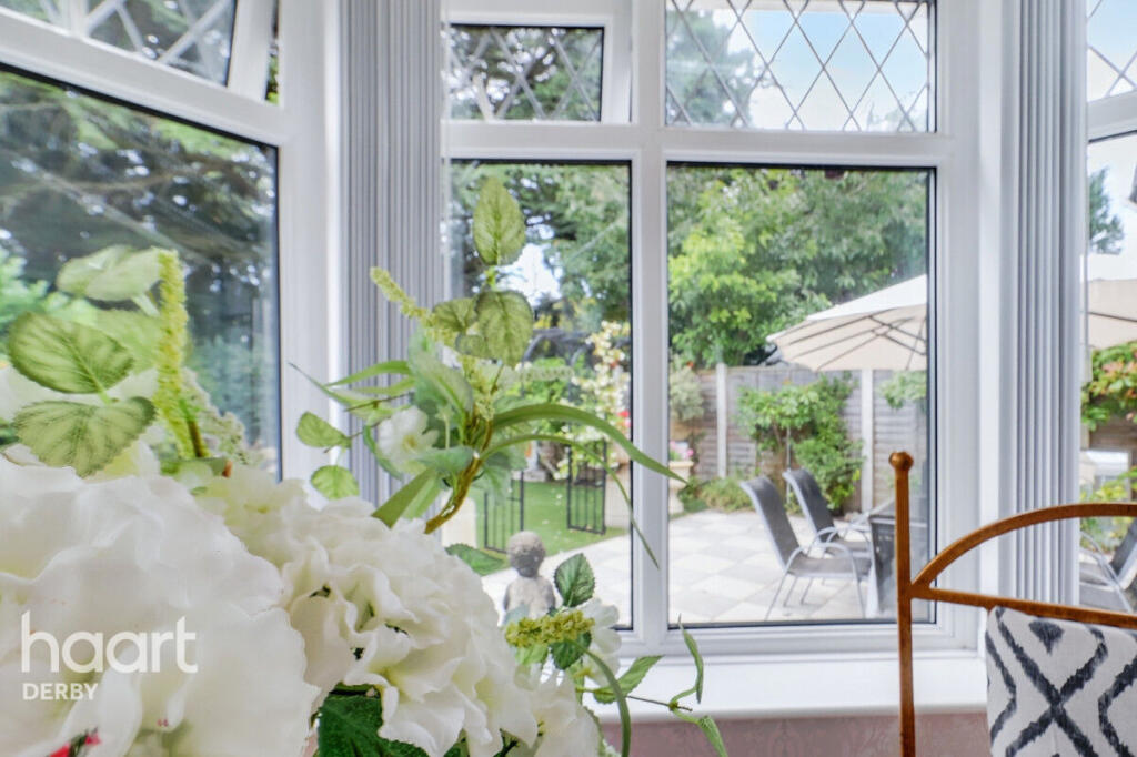Beautifully presented three-bedroom home in a quiet Chellaston cul-de-sac. Features spacious lounge/diner, conservatory, two double bedrooms, private south-facing garden, garage, and double driveway. Ideally located with views over open green space
