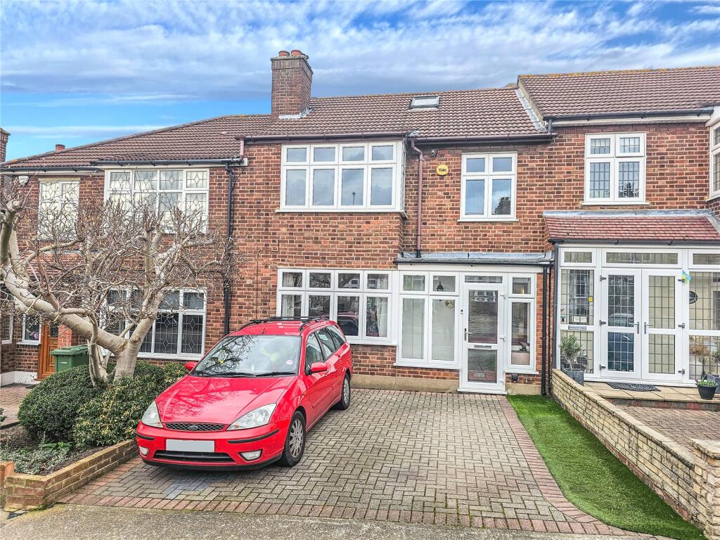 Ideally located for Gidea Park Station (Elizabeth Line). Three bedroom mid terrace home with potential to enlarge (SSTP). Lounge/Diner. Fitted Kitchen. Ground Floor WC. Conservatory. Bathroom. Separate WC. 63ft Mature rear garden with two external garden sheds. Off Street Parking.