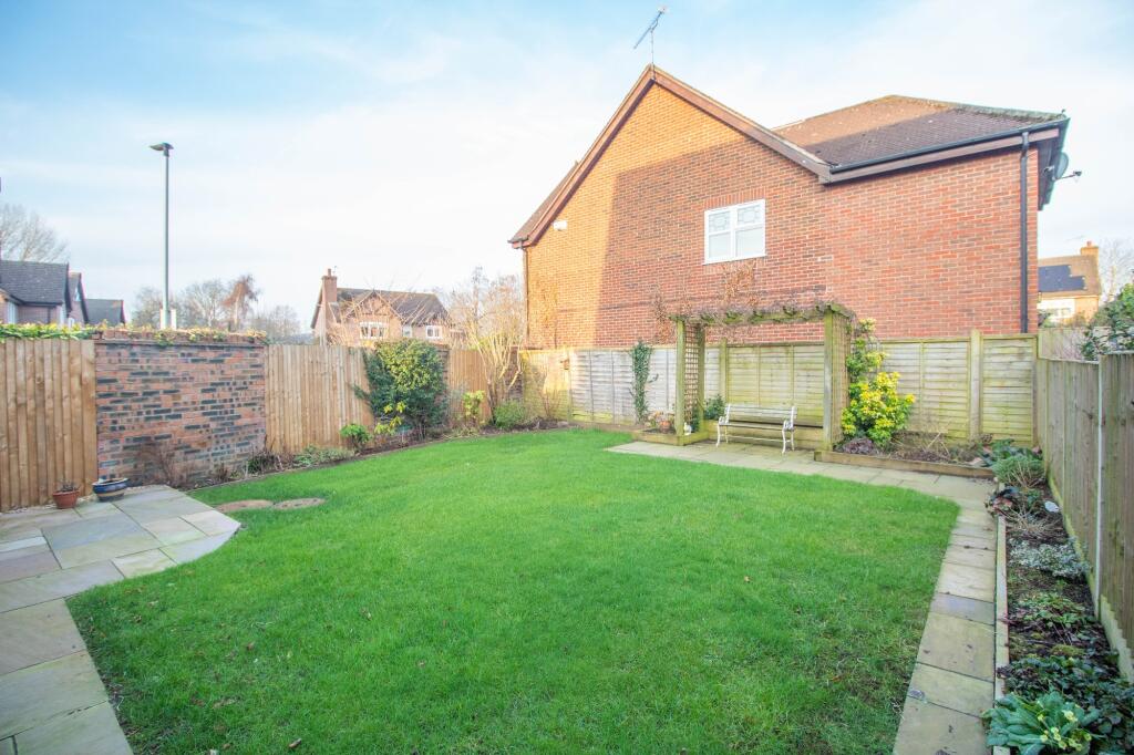 The property includes a garden, as evidenced by the photos showing a sizeable, well-maintained lawned area. The presence of a garden is a desirable feature for many buyers, indicating a positive land score.
