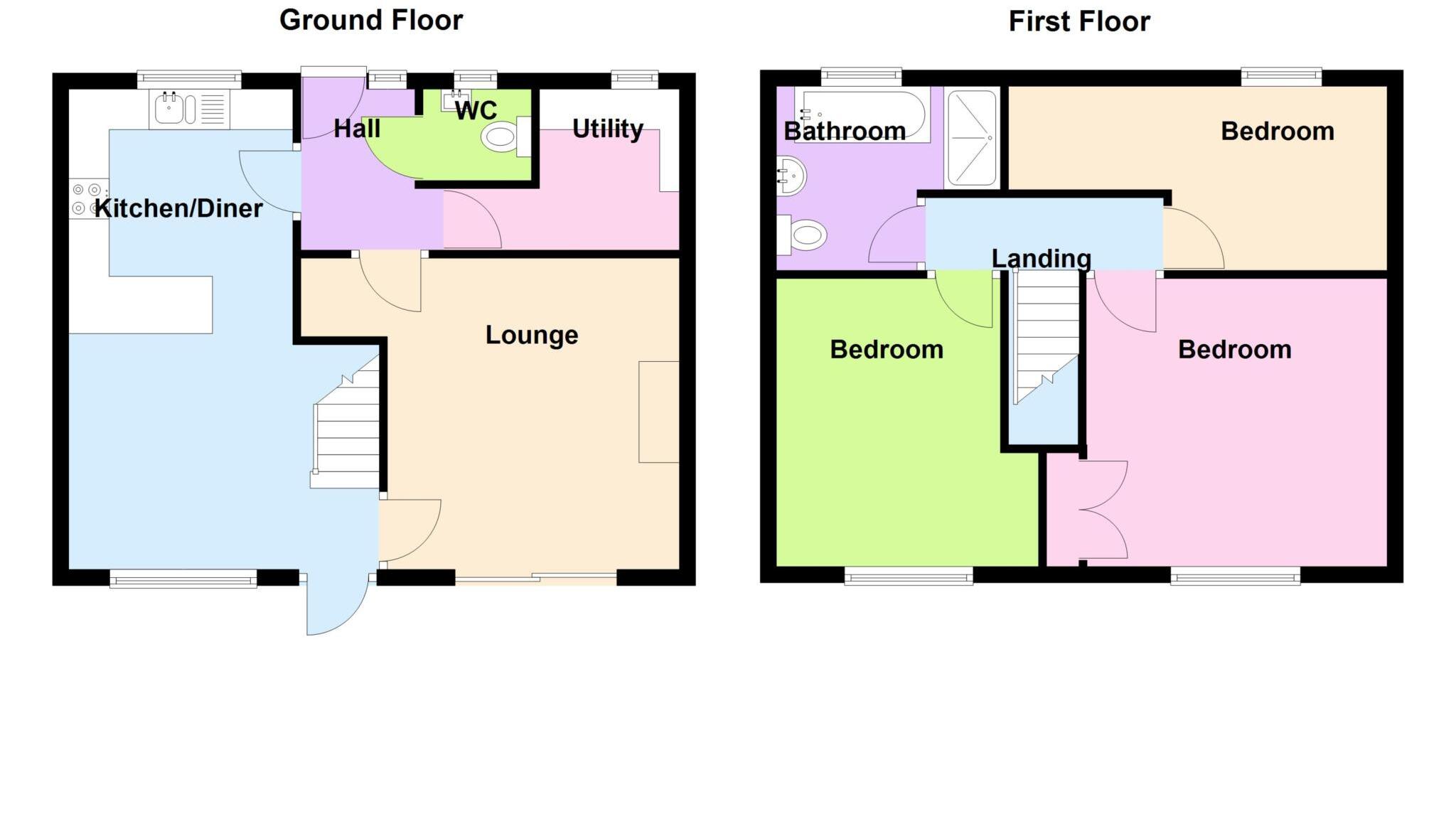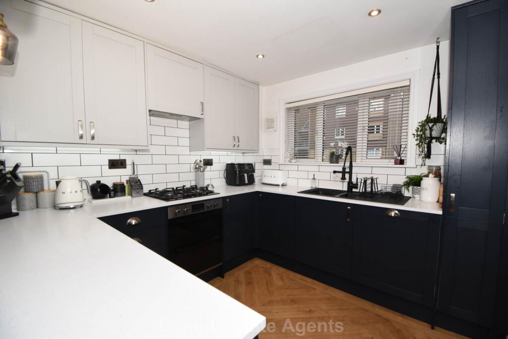 3 bed house with a modern kitchen/dining room and a lounge with a feature media wall. There is a first floor 4 piece bathroom. PVCu double glazing and gas central heating are installed. Outside is a low maintenance garden and a parking space nearby.
