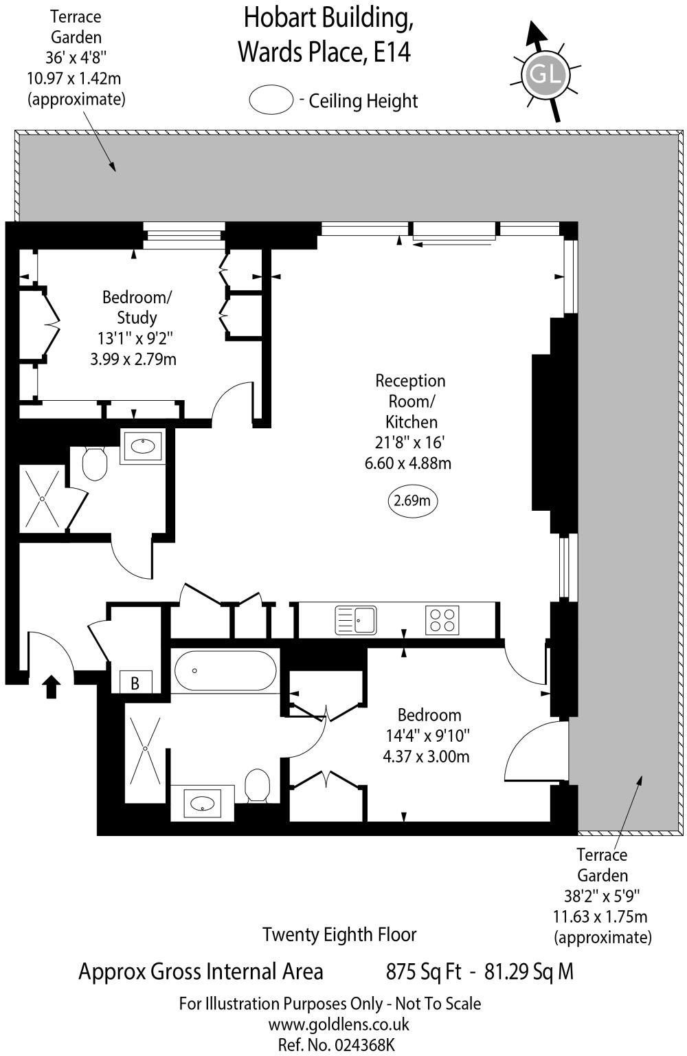 A superb 28th floor two bedroom, two bathroom apartment, with wrap-around balcony with bespoke self-watering garden package, located in E14's new premier development, Wardian.