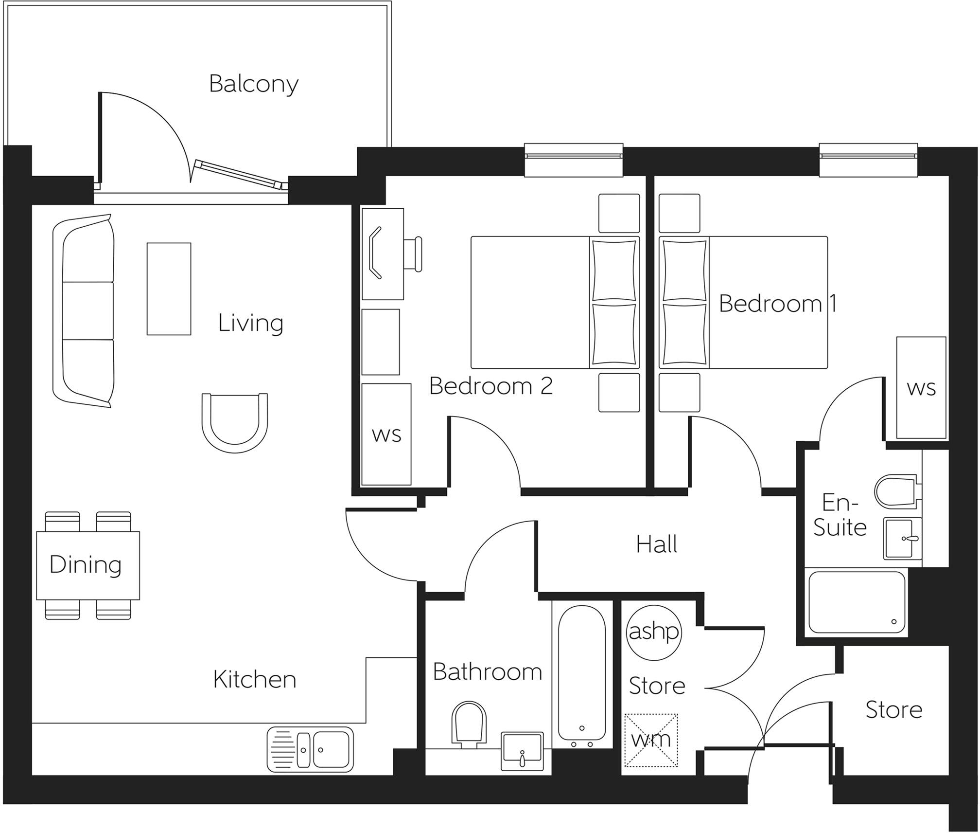 Close to amenities. The Tyne is a brand new, chain free, energy efficient home, featuring an OPEN-PLAN kitchen, family and dining area, two double bedrooms with en suite to bed 1, BALCONY and a 10-year NHBC Buildmark policy^.