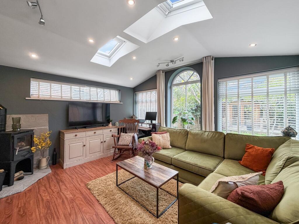 EXCEPTIONAL, beautifully presented, DETACHED THREE/FOUR BEDROOM FAMILY HOME with STUNNING, LANDSCAPED rear GARDEN, PART GARAGE and off road PARKING. Accommodation comprises entrance hall, OPEN-PLAN kitchen/dining/sitting room, UTILITY ROOM, STUDY/BEDROOM FOUR, SUN ROOM with LOG BURNING STOVE a...