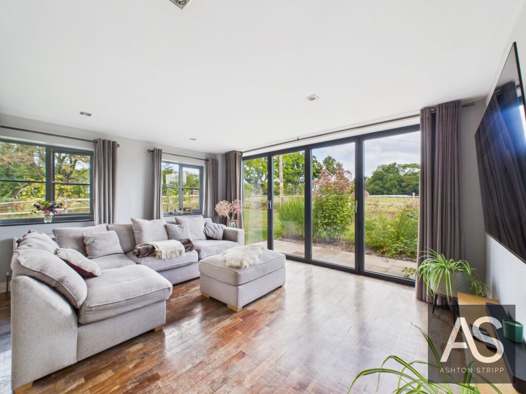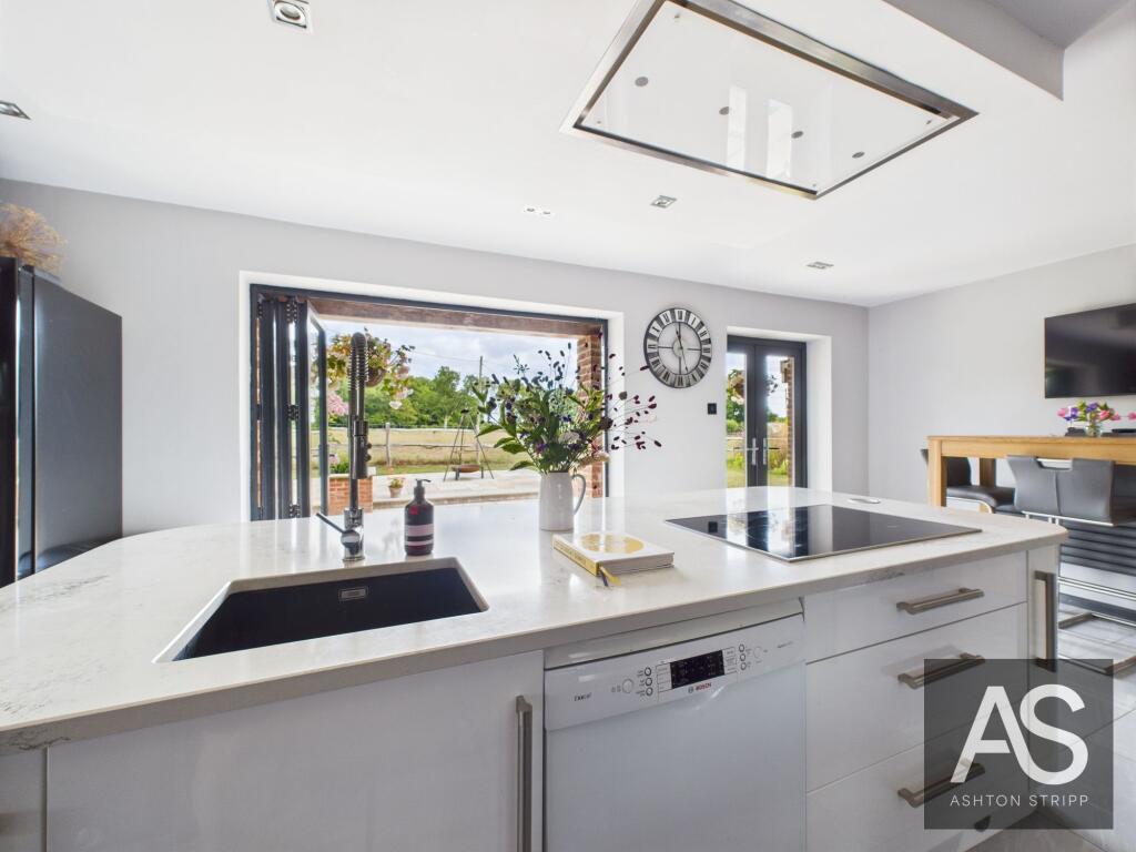 Elegant family home in Whatlington offering generous living spaces, bi-fold doors to the gardens, and multiple en-suites. Includes a high-spec kitchen with island, flexible layout, and wraparound gardens. Well placed for Battle, A21, station, and top schools.