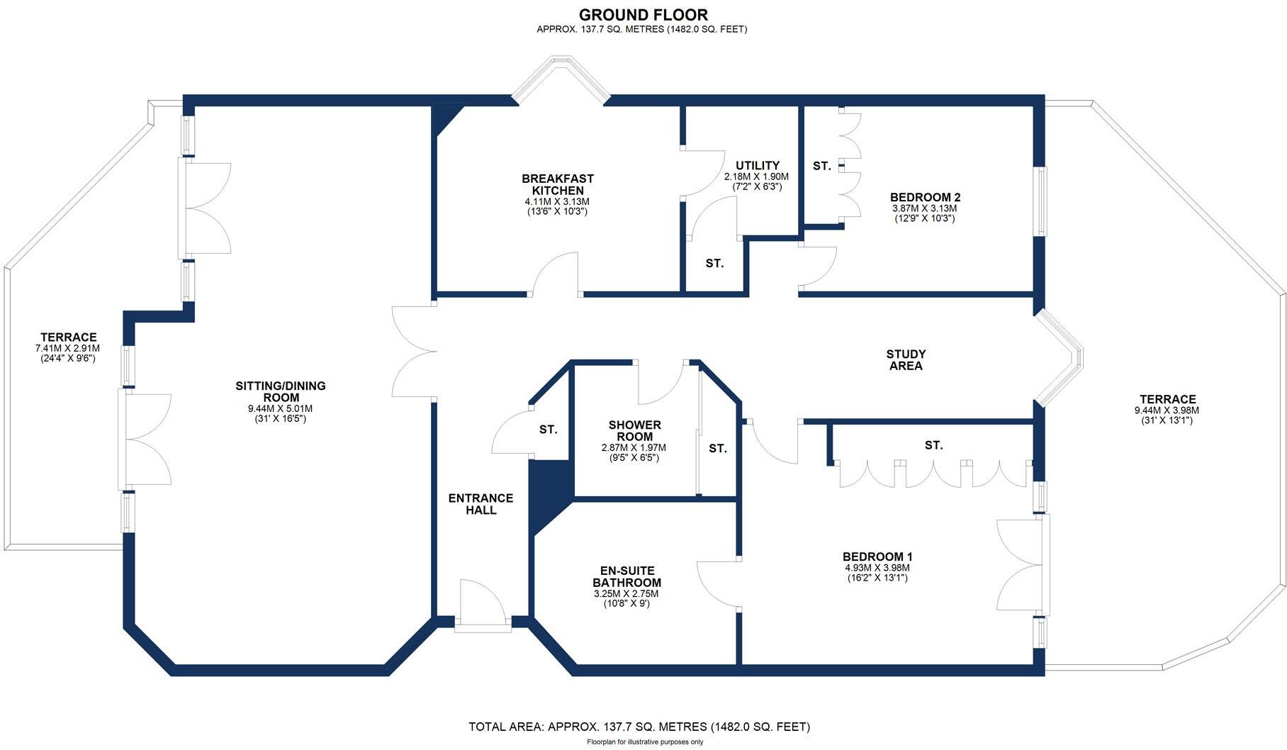 ***NO ONWARD CHAIN*** Forming part of a prestige development of just six apartments and positioned on the ground floor with private south westerly facing terrace at the front. The superbly proportioned accommodation briefly comprises private entrance hall with generous study area, spacious si...