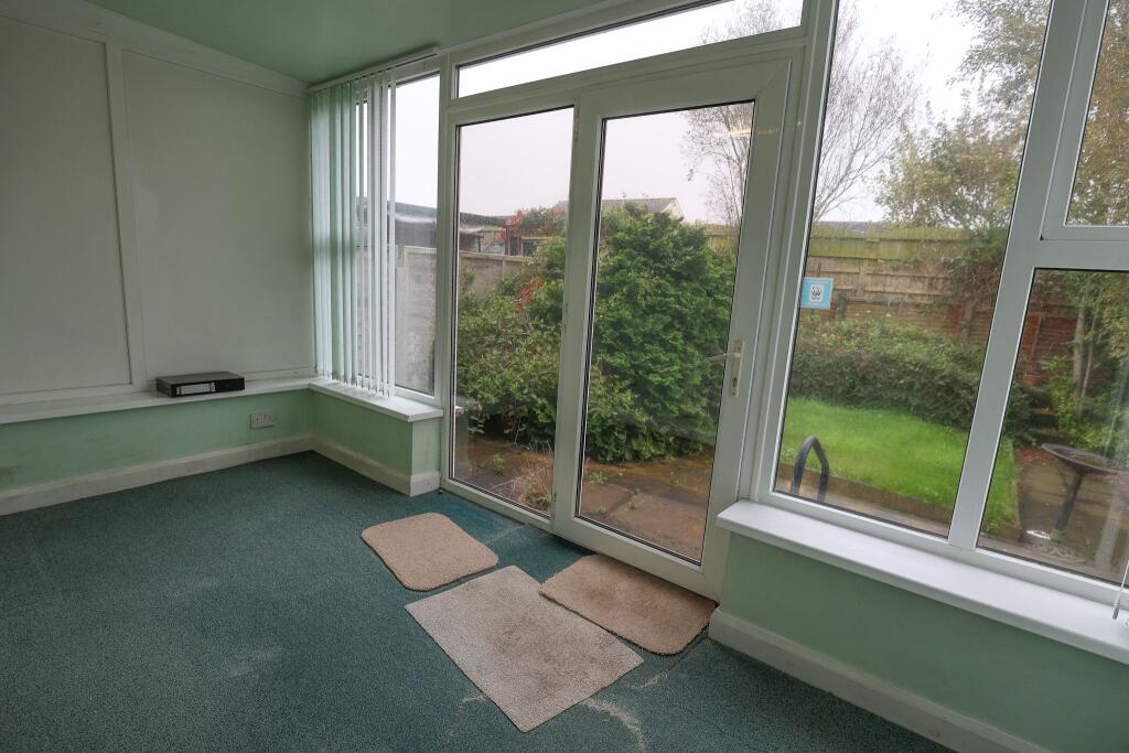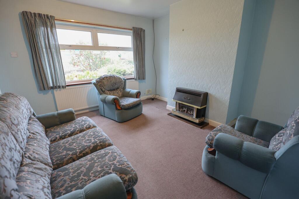 Well-proportioned 1 bed semi-detached true bungalow, Semi-rural location, uPVC d/glazed, gas central heated, Generous size lounge, kitchen diner, sun room, Double bedroom, 3-piece bathroom/wc, Off-road parking, detached garage, pleasant rear garden. NO CHAIN.