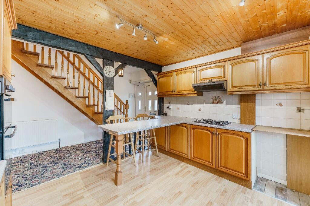 Spacious 5-bed bungalow with huge potential! Modern open-plan kitchen, ground-floor bedroom with shower room, and a full-width living room with a gas fire. Four double beds upstairs, wrap-around gardens, big driveway, double garage & workshop, ready to modernise and make your own!