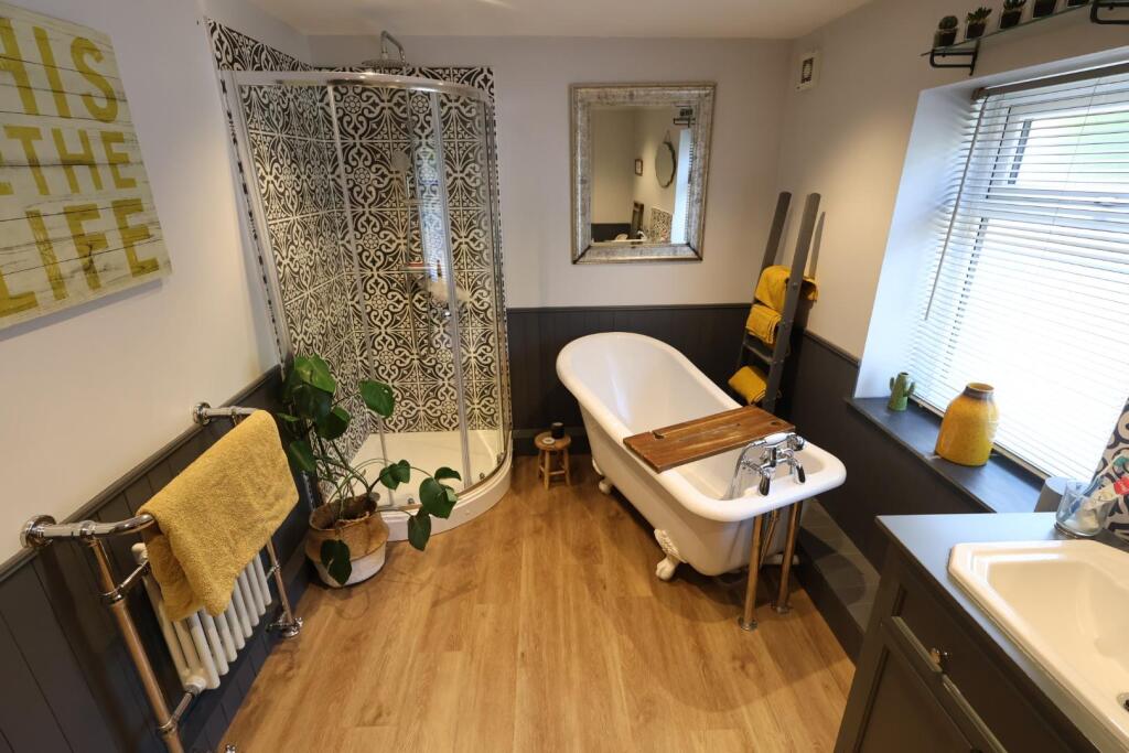 Recently modernised and sympathetically restored, this stunning stone cottage offers far-reaching garden views and blends character with contemporary comfort. It features gas central heating, UPVC double glazing, a spacious living room with a cast iron log burner, a stylish shaker-style kitchen/d...