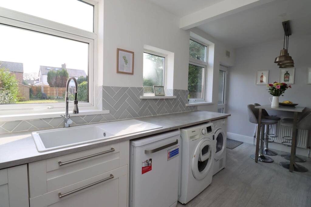 This property is a 2-bedroom semi-detached house located in Eastham, Wirral. Based on the images provided, the property appears to be well-maintained and recently renovated, with a modern kitchen and bathroom. There is a good-sized garden, and off-street parking. The location is close to local schools and transport links. The asking price is slightly below the average price for similar properties in the area.