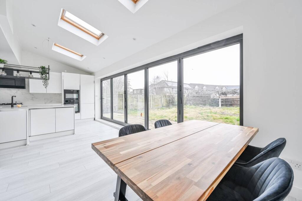 This property is a 3-bedroom semi-detached house located in Kidbrooke, London. The location benefits from being relatively close to Kidbrooke train station, providing convenient access to central London. There are also several well-regarded schools within a reasonable distance, making it attractive to families. The property itself has recently undergone a significant extension and modernisation, resulting in a contemporary and well-presented interior. The extension includes a large, open-plan kitchen/dining area with bi-fold doors leading to the garden. The kitchen is modern and well-equipped. The property also benefits from a newly fitted bathroom. While the plot size is not specified, the garden appears to be of reasonable size. The asking price of £625,000 is higher than the average price for the area but is in line with prices of similar properties in the immediate vicinity. Given the extent of the recent renovation work and the desirable location, the price may be considered reasonable.