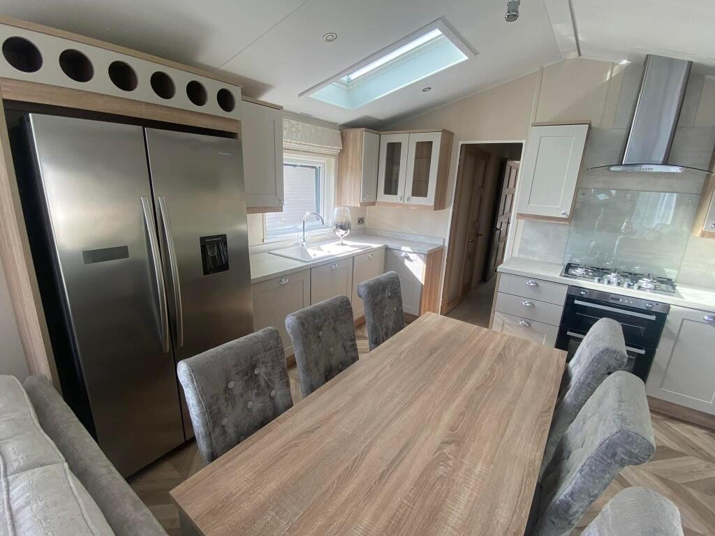 This park home in Ribble Valley presents a great opportunity for those seeking a modern, well-maintained property in a scenic location. The home features two bedrooms and two bathrooms, making it suitable for small families or couples. The interior is modern and well-kept, with a contemporary kitchen and bathrooms. The property also benefits from a garden and pleasant views. The location is convenient, with nearby schools and local amenities. Overall, this property offers a blend of comfort, style, and convenience in a desirable location. The inclusion of a swimming pool is a great addition.