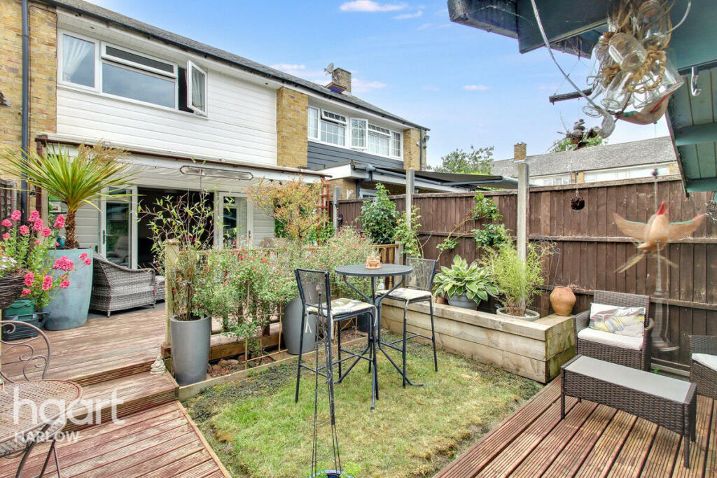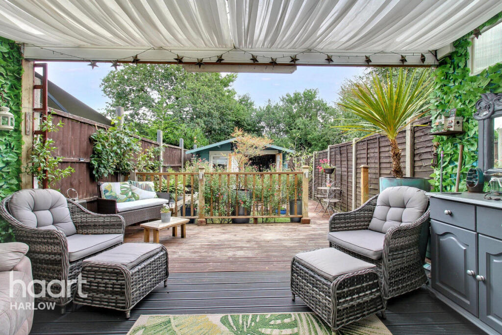 Guide Price £300,000-£325,000. Charming two-bed mid-terrace in Harlow CM18 with kitchen diner, lush garden, music lover’s setup, summer house, near schools and shops. Book your viewing today—live where lifestyle flows