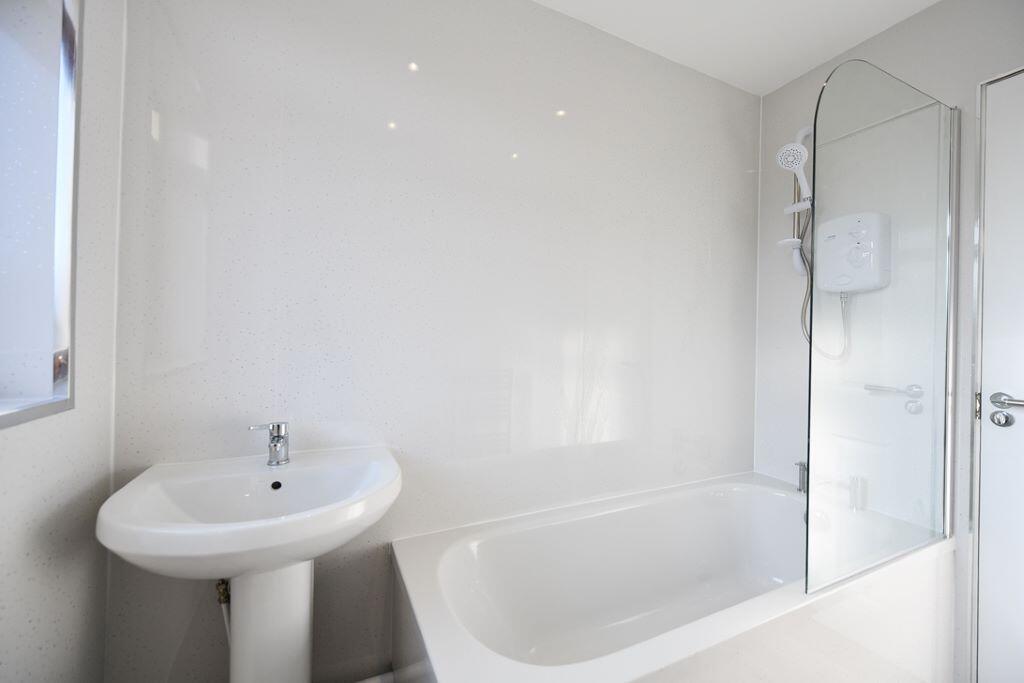 The property is an end-of-terrace house located in Irvine, North Ayrshire. It features 2 bedrooms and 1 bathroom. Based on the images, the property appears to be in good condition, with a modern kitchen and bathroom. The exterior appears well-maintained. The property benefits from off-street parking and a shed.