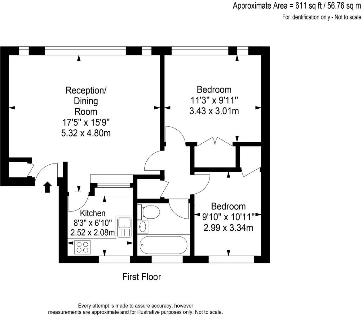 Based on the images, the property appears to be in fair condition. While the kitchen and bathroom seem relatively modern, some areas show signs of wear and tear, such as minor wall damage in one of the bedrooms. The property itself is a flat and as such has no land. The average price per sqft in the area is £569. Given the property’s size of 610.96 sqft, one might expect a price closer to £347,000 (£569 x 610.96). However, local comparable properties (nearby listings and nearby properties) show a range of prices, some significantly lower than the average. The list price of £250,000 falls within this lower range, suggesting it could be a reasonable price, considering the condition and lack of outdoor space. However, further investigation into the specific condition of the property would be needed to confirm this.