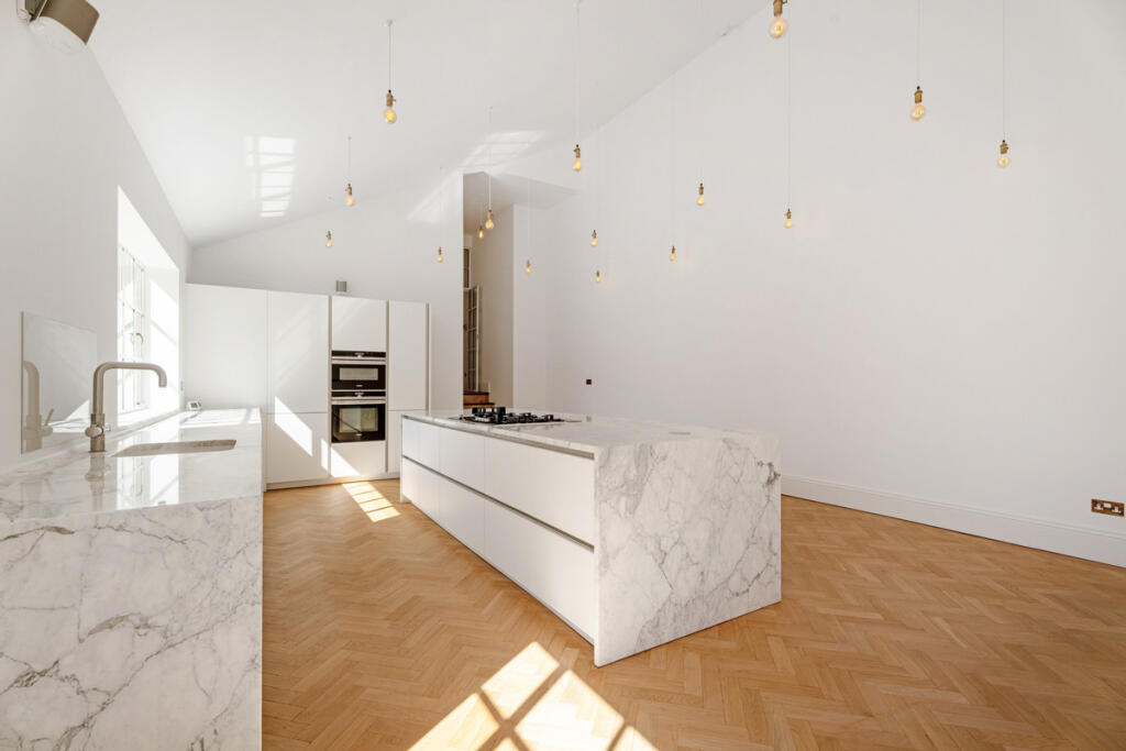 The property is a stunning, recently renovated apartment located in Leamington Spa. The apartment itself is in excellent condition, boasting a modern, open-plan design with high-end finishes. The kitchen is particularly impressive, featuring a large marble island and high-quality appliances. The herringbone wooden flooring throughout adds a touch of elegance. The property also benefits from a private patio area, perfect for outdoor relaxation. Given its location on Kenilworth Road, the property is conveniently situated near several amenities, including shops, restaurants, and transportation links. The proximity to Arnold Lodge School and other reputable schools further enhances its appeal to families. While the plot size is relatively small for an apartment, the private patio offers a valuable outdoor space. The list price of £900,000 appears high compared to the average price of similar properties in the area. However, the significantly larger size (1,656.65 sqft) and high-quality renovation work justify a premium price. Considering the luxurious finishes, modern design, and desirable location, the price, while high, may be considered reasonable for a discerning buyer seeking a premium property in Leamington Spa. The property is a period property that has been extensively modernised.