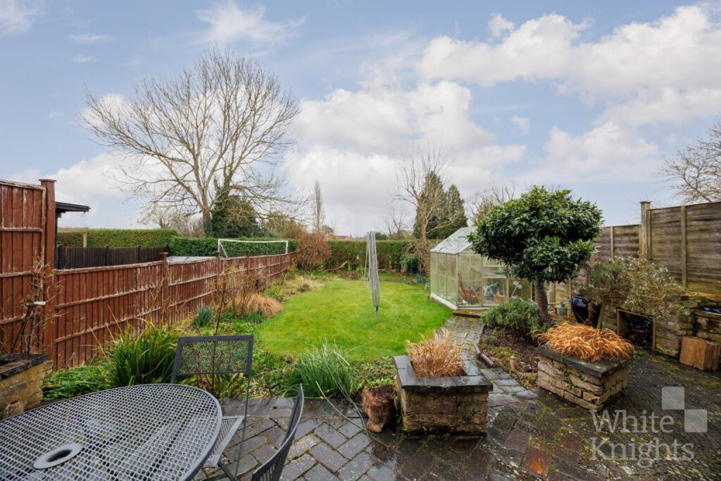 The property includes a garden, which is a desirable feature for many buyers. The size of the garden appears to be modest, but adequate for the size of the house. The presence of a greenhouse suggests potential for gardening and outdoor activities.