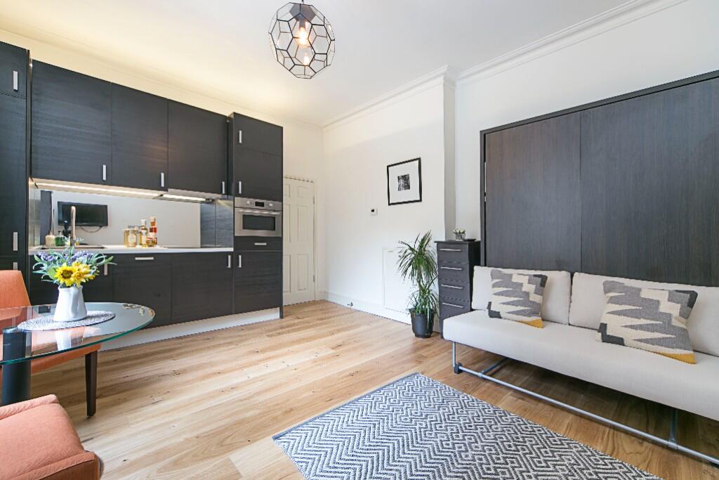 Furnished SERVICED studio apartment near Hyde Park featuring a well-equipped kitchen and modern amenities. Set in a beautiful residential area, surrounded by excellent transport links and a short walk from Hyde Park.