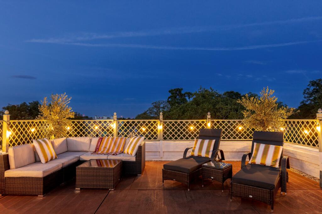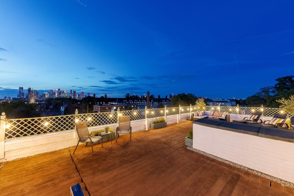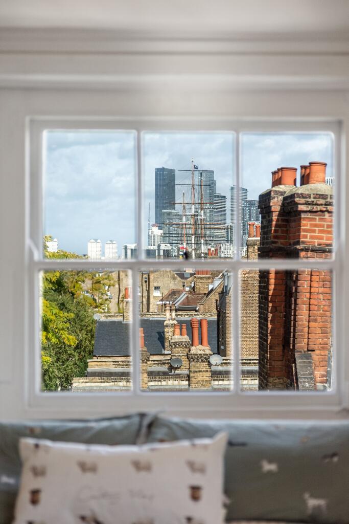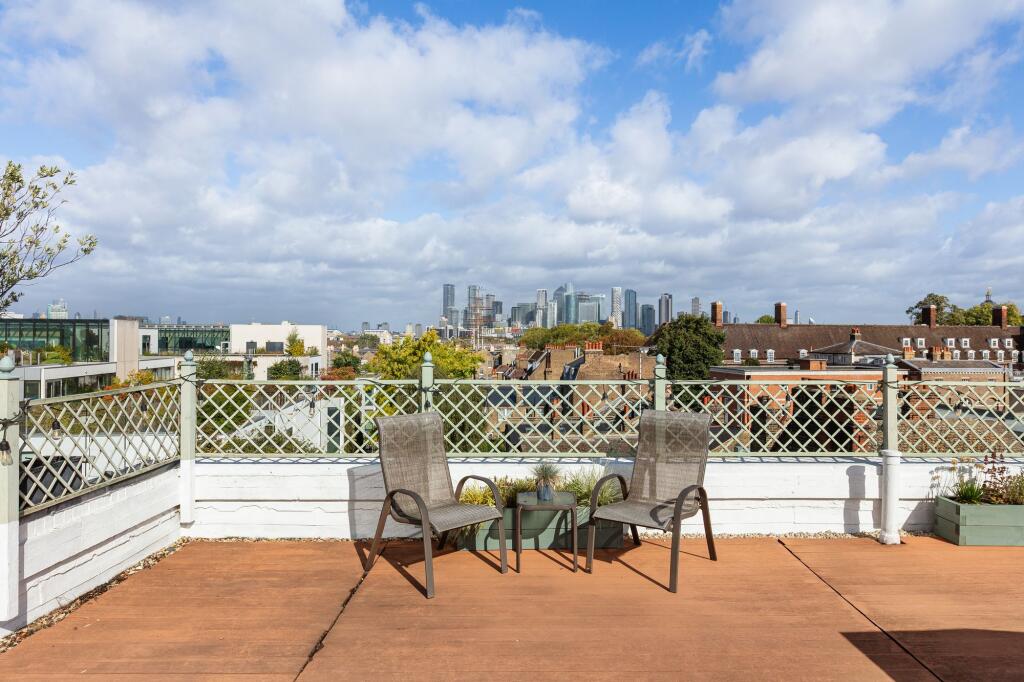 Two-bedroom flat on Nevada Street with a private roof terrace boasting stunning views of Canary Wharf and the Cutty Sark. Period character, open-plan living area, and steps from Greenwich Park. A historic gem in the heart of Greenwich.
