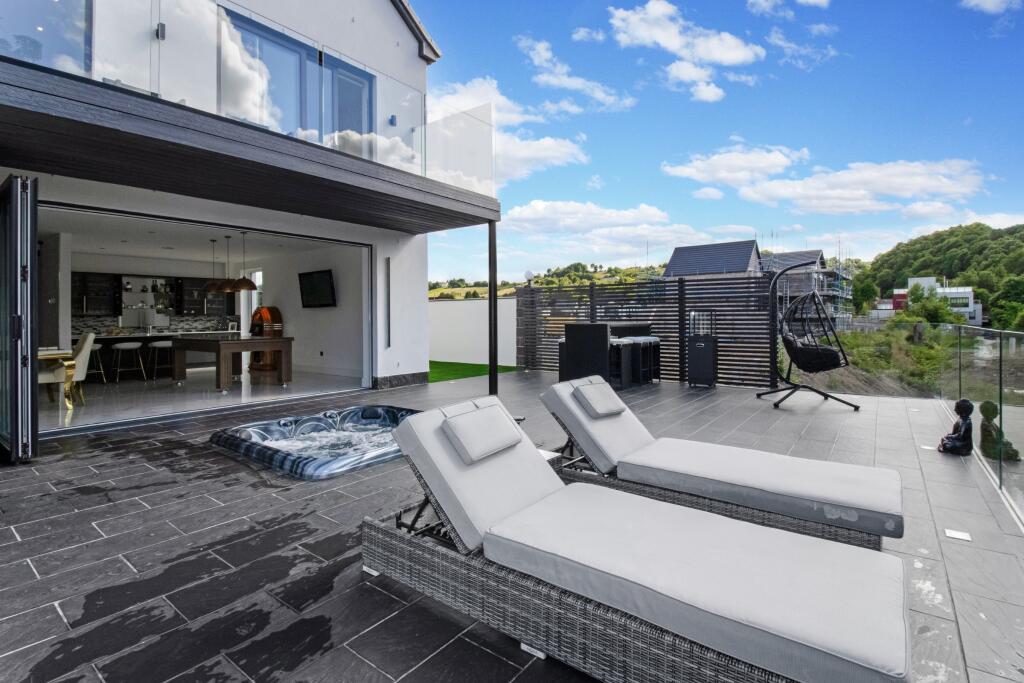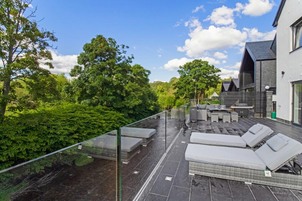 This property is a modern detached house located in Crossford, South Lanarkshire. The location is desirable due to its proximity to the Carluke train station (3.95km) providing convenient access to Glasgow and other areas. While specific school information is unavailable, the area appears to be residential with several nearby streets showing average property prices ranging from £166,663 to £475,832. The property itself boasts a contemporary design with a large patio area overlooking a river. The images suggest a high standard of finish and modern amenities. The plot size is not specified, however, the images show a substantial outdoor area. The list price of £685,000 is higher than the average price of £628,325 for the area, but considering the property’s modern design, river views, and apparent high-quality finish, it may be justified. More information on the plot size and specifics of the property would be beneficial for a more complete evaluation.