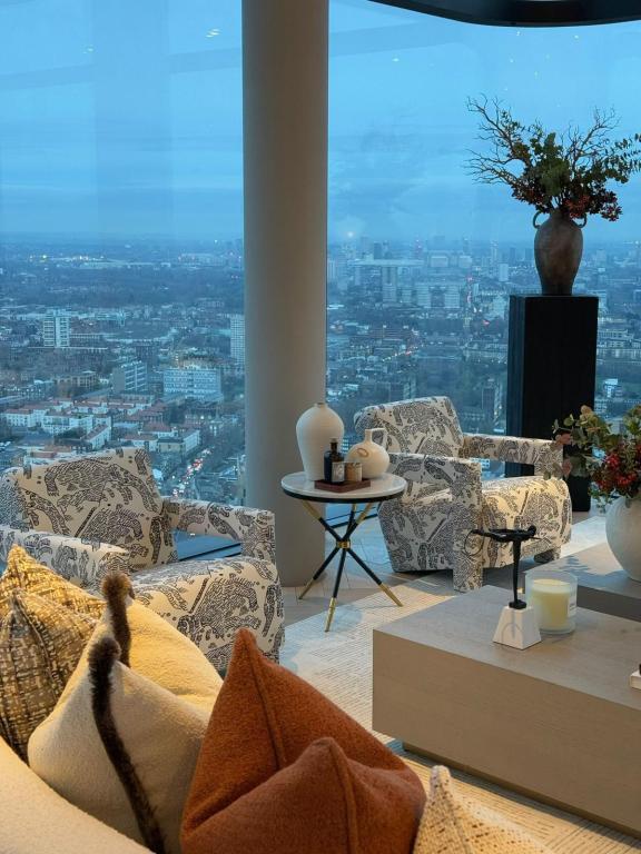 Beautiful 3 bedroom 48th and 49th floor duplex penthouse with North, East and South views located in the 50 storey tower and landmark development Principle Tower. 5 local major transport hubs within walking distance, making it convenient to access all corners of the capital.