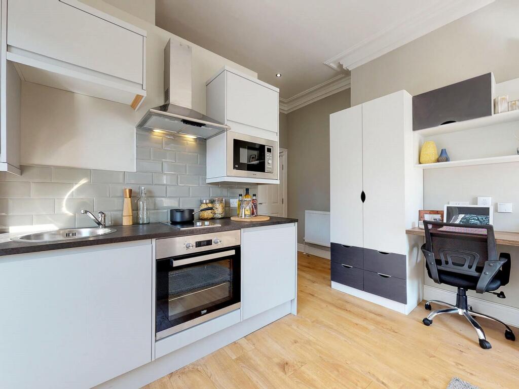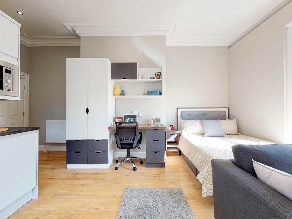 Listing code 227046. Step into your stylish, studio apartment at 19 Springfield Mount, our accommodation ensures you’ll have everything you need. Your kitchen features seamlessly fitted appliances, including a fridge/freezer, oven, hob, microwave and washer/dryer, all ...