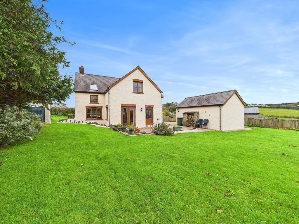 This is a charming detached property located in the rural area of Narberth, Pembrokeshire. The house features four bedrooms and two bathrooms, making it suitable for families. The property includes a well-maintained garden, a patio, and a detached garage, offering ample outdoor space and storage. The interior appears to be in good condition, with a traditional style that could benefit from some modernization. The location provides a balance of rural living with convenient access to local amenities and transportation links. Overall, this property presents a desirable opportunity for those seeking a comfortable home in a picturesque setting.