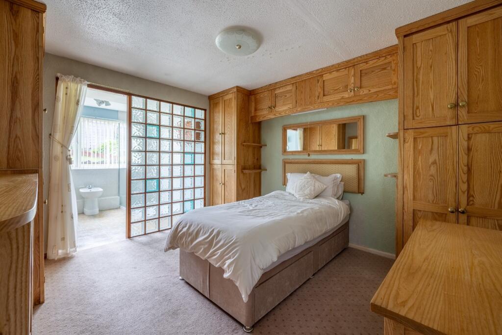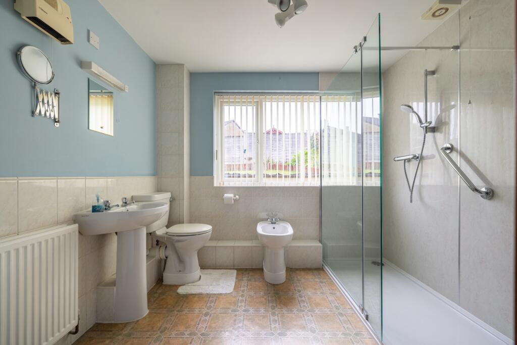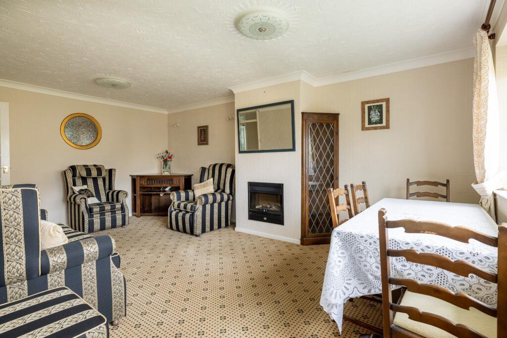 A well proportioned and extended three bedroom bungalow in an elevated position, with a garage and driveway parking.