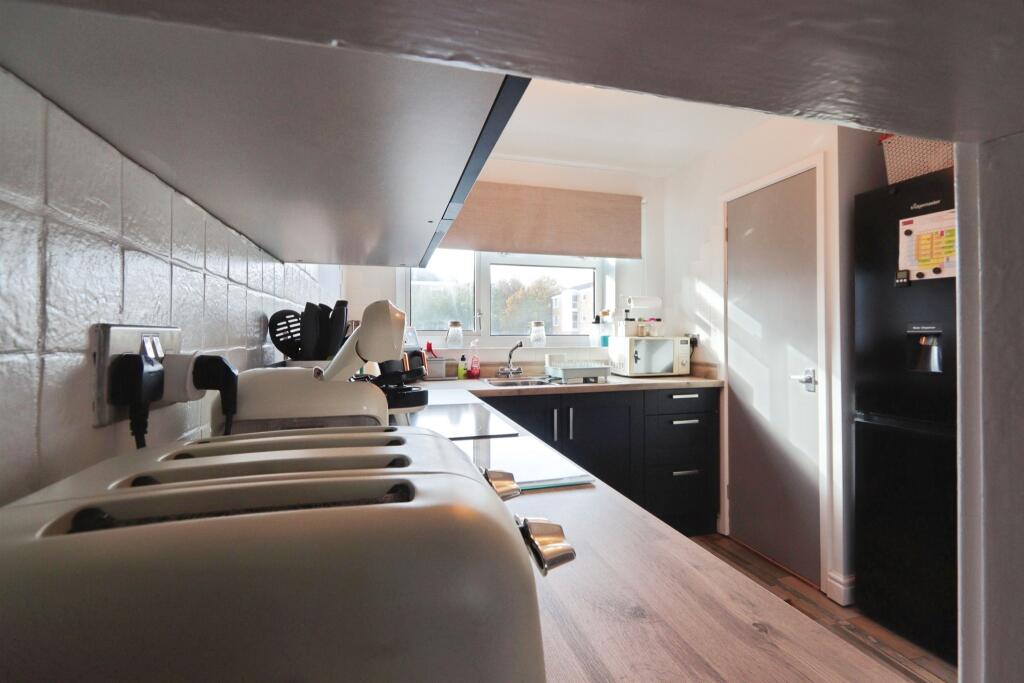 "This apartment offers a compact cloakroom, a lounge, and a refurbished kitchen with appliances such as an electric hob and oven. It includes a carpeted landing with storage, a bedroom, and a bathroom featuring tiles throughout and an integrated shower.