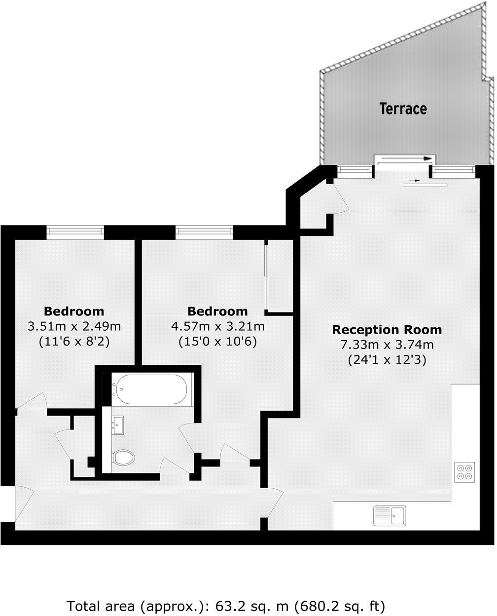 Offers in Excess of £585,000 A gorgeous two double bedroom ground floor apartment with a bright 24' open-plan lounge leading onto a private terrace.