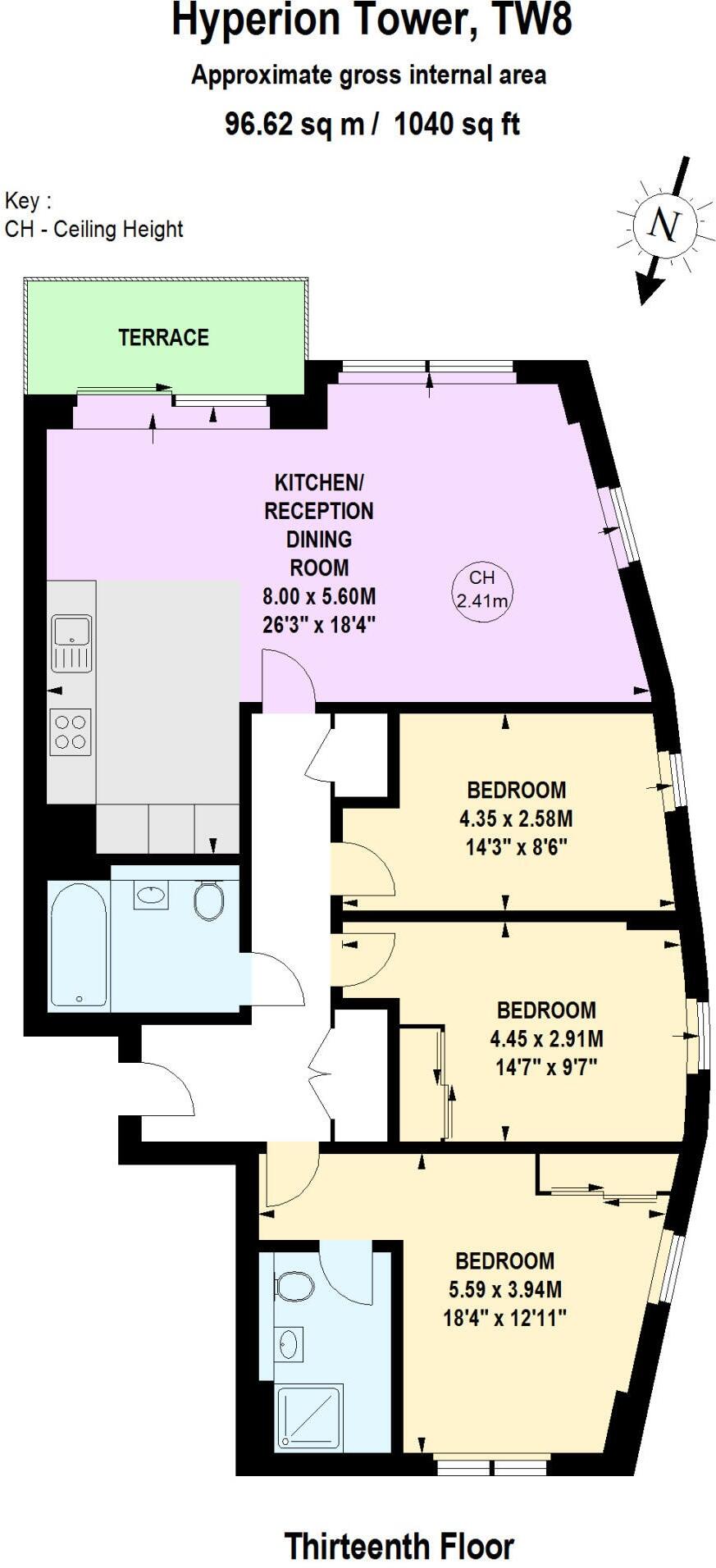 Contemporary three bedroom, two bathroom (Approx. 1059 sq ft, situated on the 13th floor (with lift access) within Pump House Crescent in Hyperion Tower by Kew Bridge, TW8. The apartment offers a spacious open living/kitchen space leading to a private balcony with fantastic views acro...