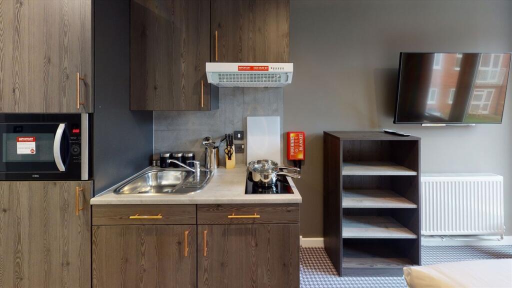 A beautifully designed, newly built studio apartment situated in a secure, modern development. This bright and airy apartment features floor-to-ceiling windows, welcoming natural sunlight in abundance. The property offers access to a shared kitchen, a sleek shower room with W/C and comes fully f...