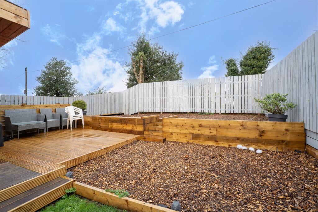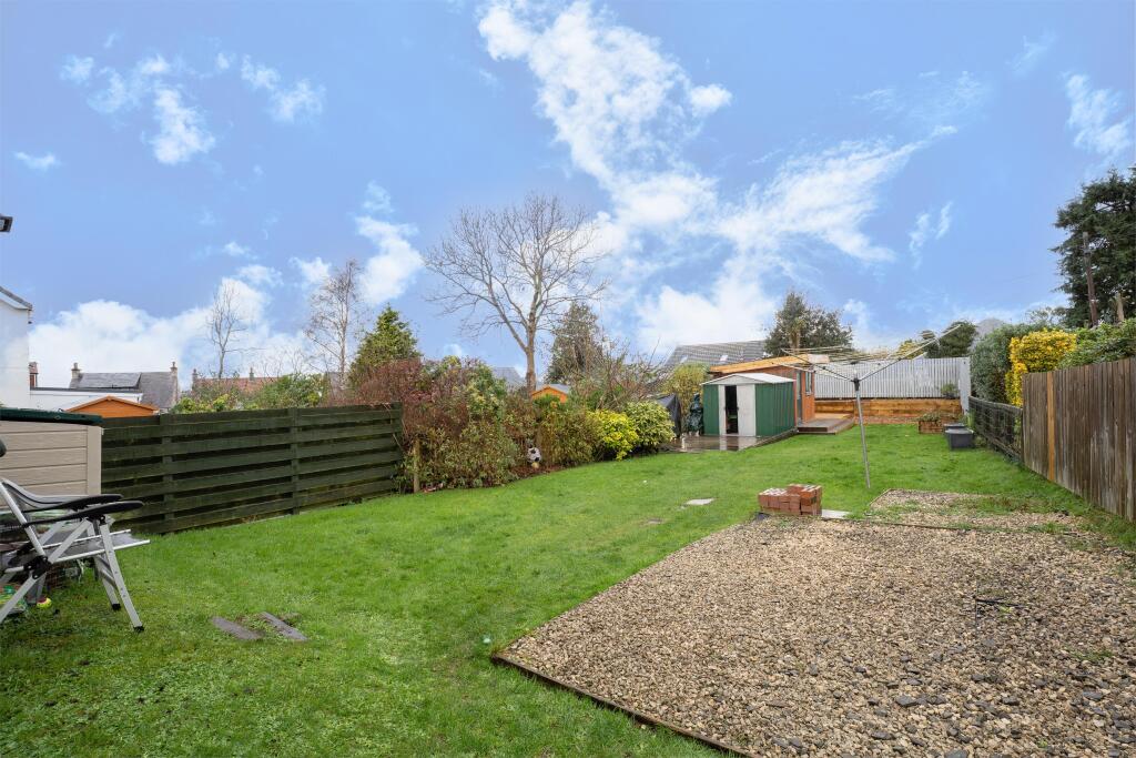 This is a 3-bedroom end-of-terrace property located in Largs, North Ayrshire. The house appears to be in generally good condition, with a modern kitchen but some dated decor in other rooms. It features a well-maintained garden with a shed and decked area. The property is situated 1.36km from Largs train station. The price is slightly above the average for the area, but the property offers good features.
