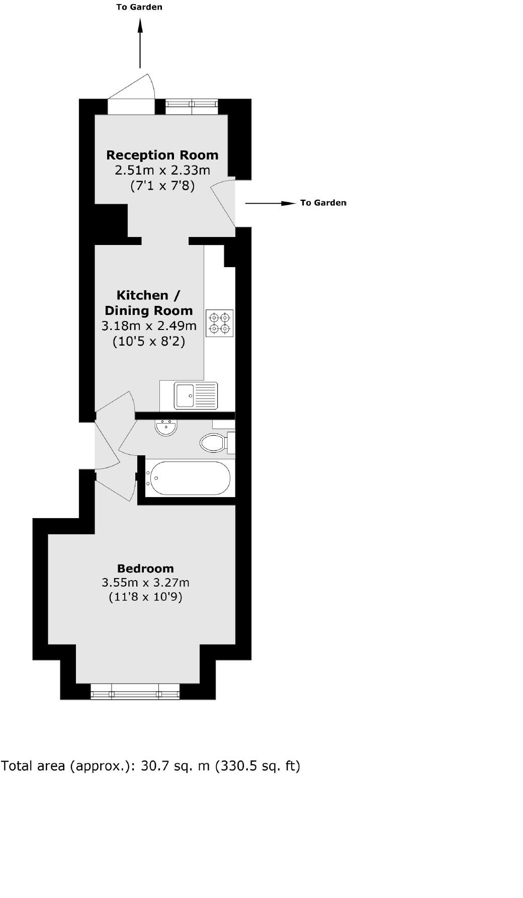 A superb ground-floor period conversion situated within a handsome, double fronted property. Presented in excellent order throughout, the accommodation comprises a bright reception room which opens onto a large, private garden, a separate, well-equipped kitchen, a double bedroom and a bathroom.