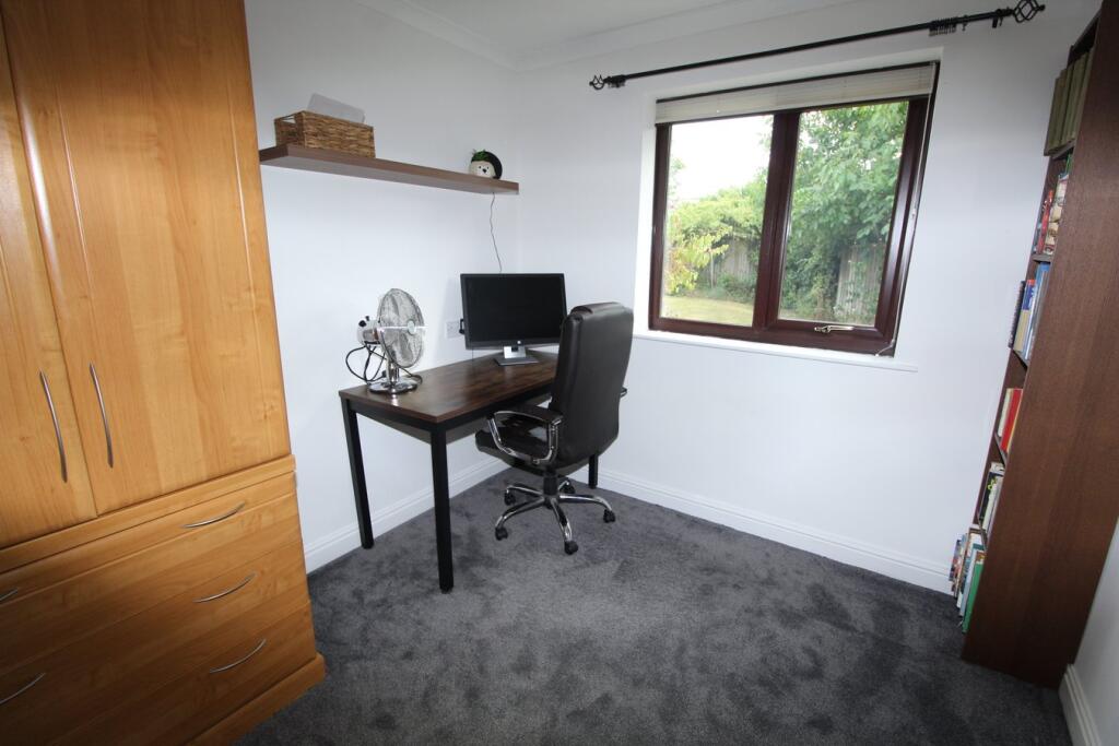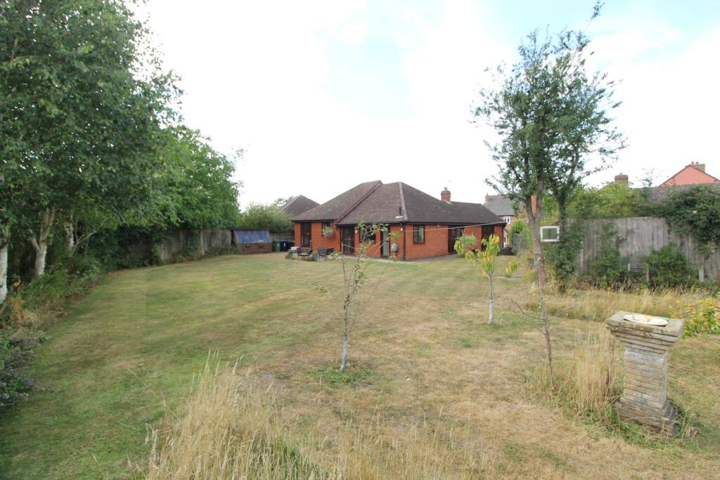 "Tucked away in a quiet cul-de-sac in a peaceful village location is this spacious detached bungalow which enjoys a larger than average rear garden with a private sunny aspect. The generous open plan interior comprises of an entrance hall, cloakroom, lounge, dining area, study/family area, bre...