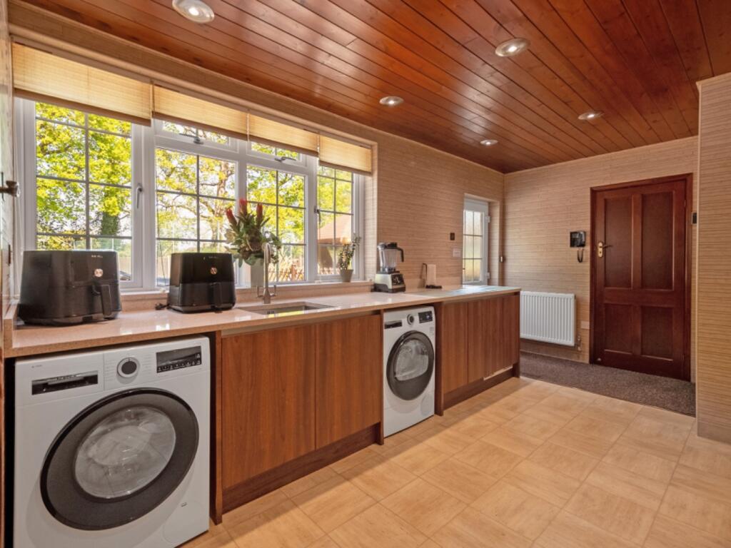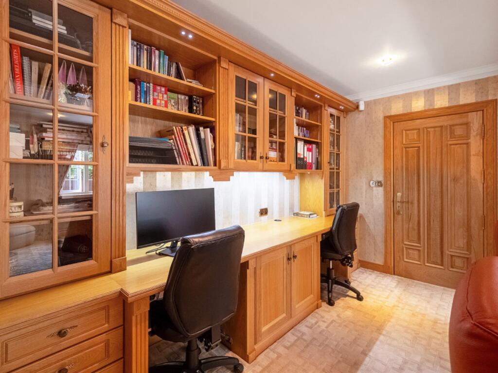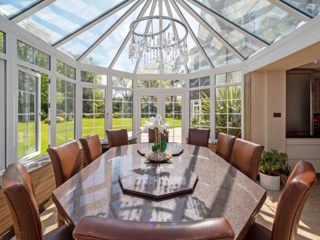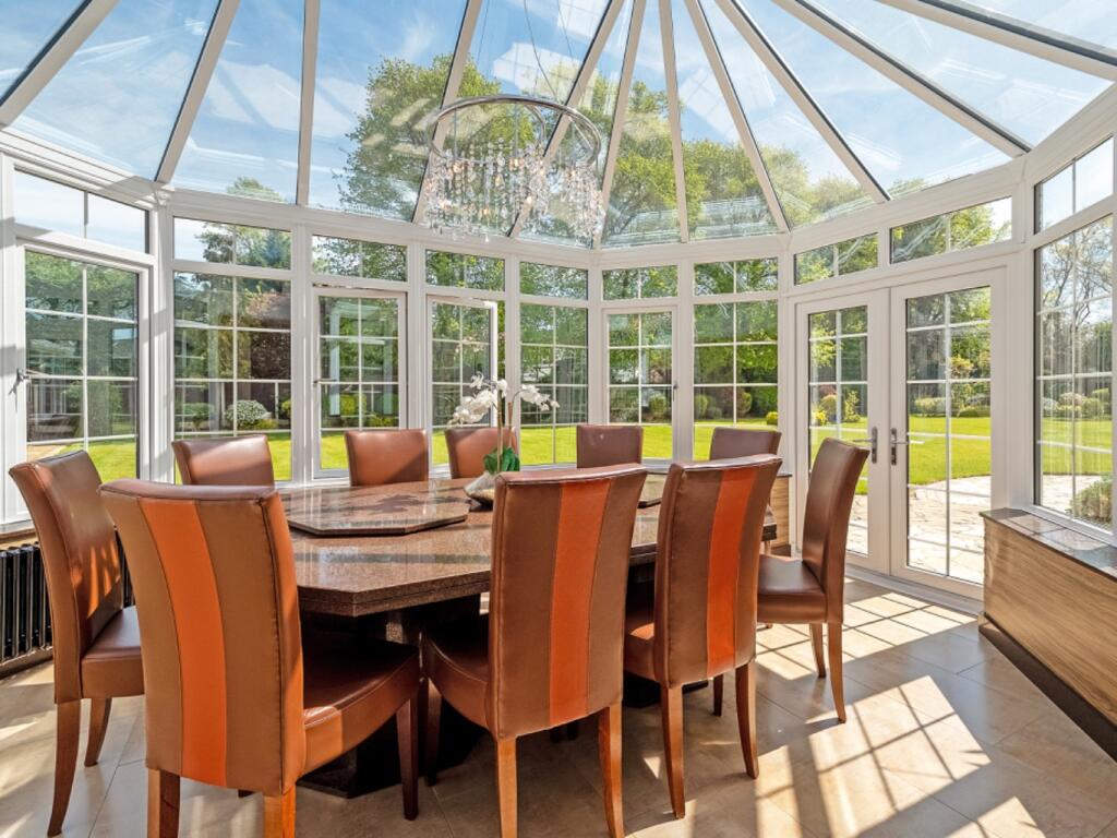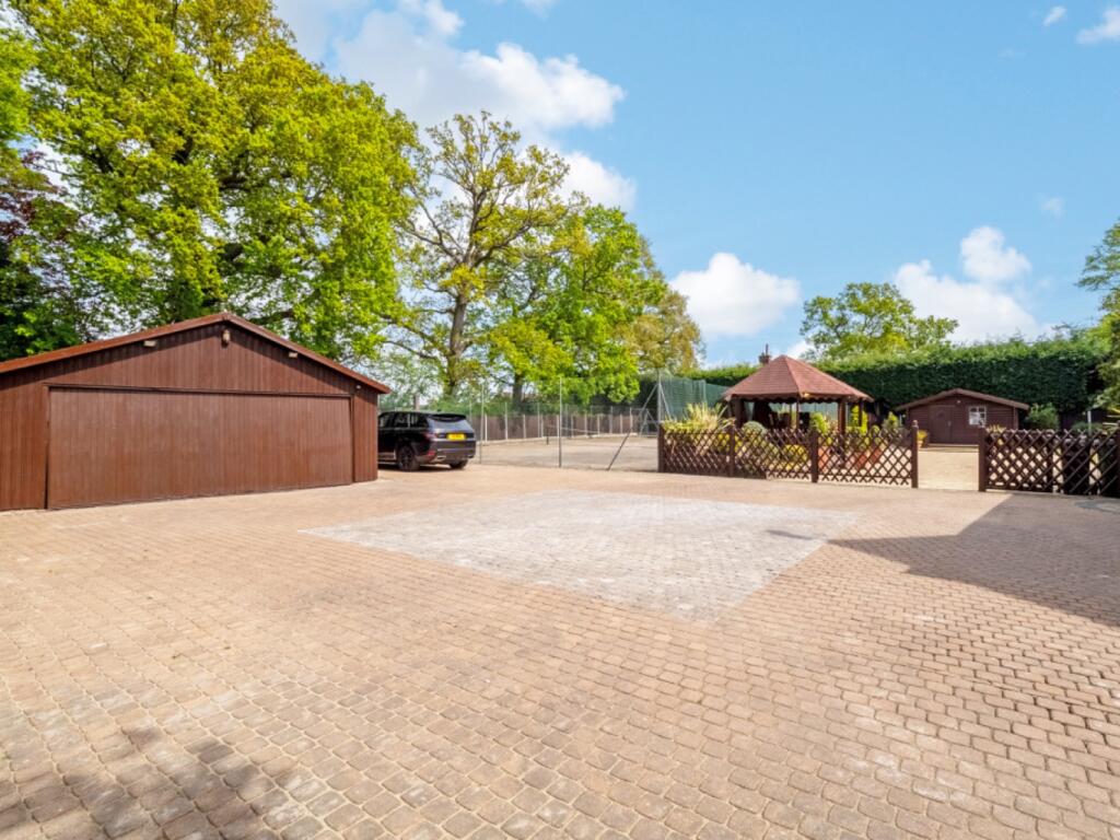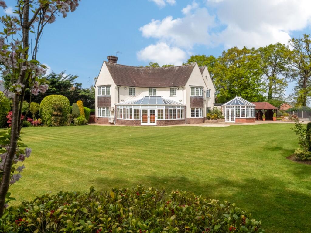 A beautifully presented five bedroom 1930s family home in Oadby, set behind electric gates on a near acre plot with landscaped gardens, a private tennis court, two kitchens, multiple reception rooms, detached summer house and garage. A rare opportunity in a prime Leicestershire location