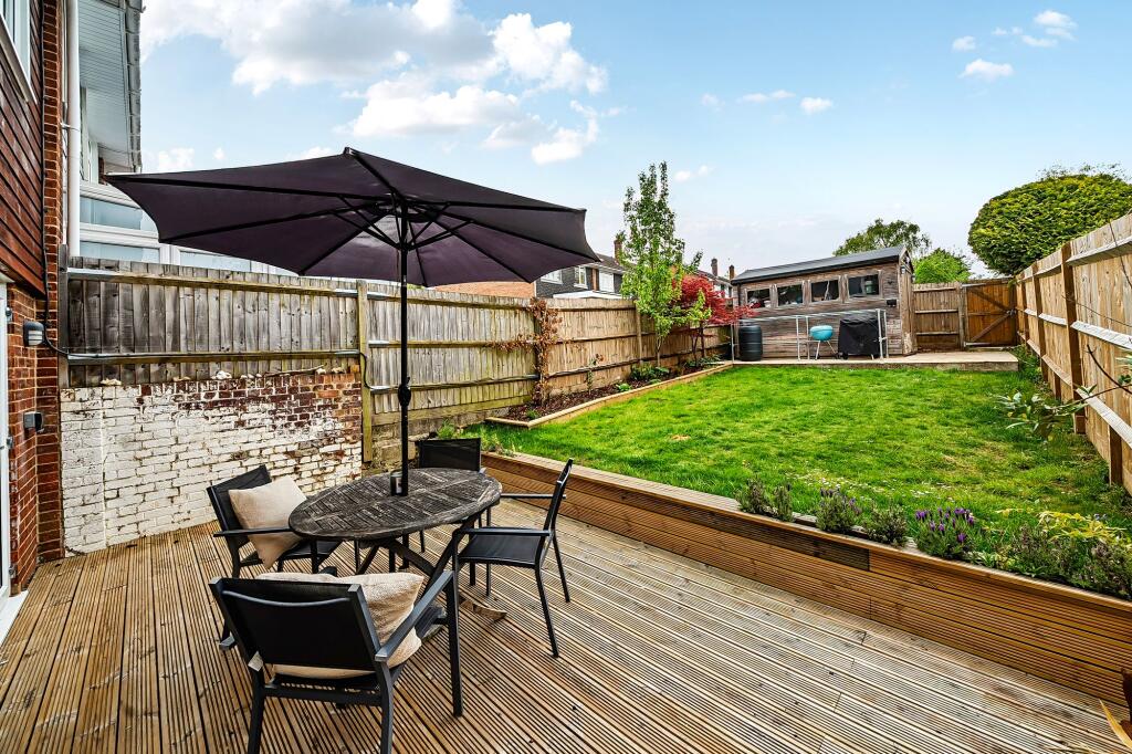 This is a three-bedroom terraced house located on Buriton Road in Winchester. The property is in generally good condition, with a modern kitchen and bathroom. It benefits from a good-sized garden with a lawn and a decked area. The property is located in a convenient location, close to local amenities and schools. The listing price seems reasonable when compared to similar properties in the area.
