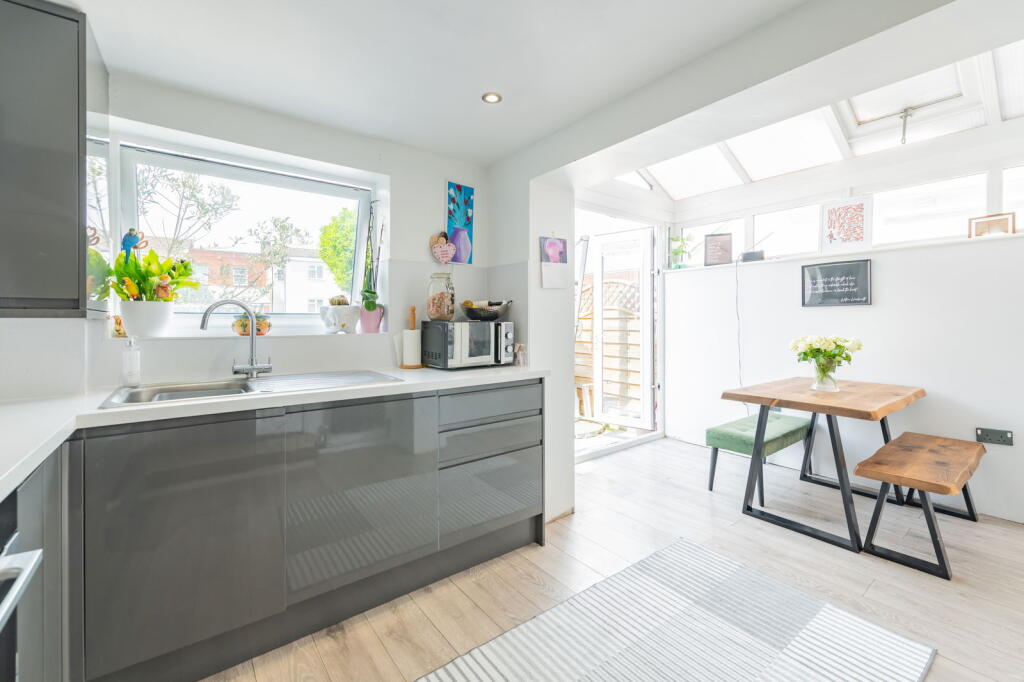 The property is a well-maintained 2-bedroom, 1-bathroom terraced house in a convenient location. It benefits from a modern kitchen and bathroom, and includes a garden, making it attractive to families. The price seems reasonable compared to local averages, although the lack of sqft data for nearby properties limits the precision of this comparison.