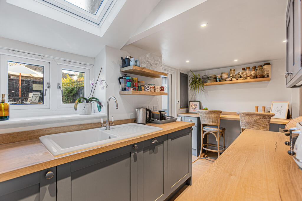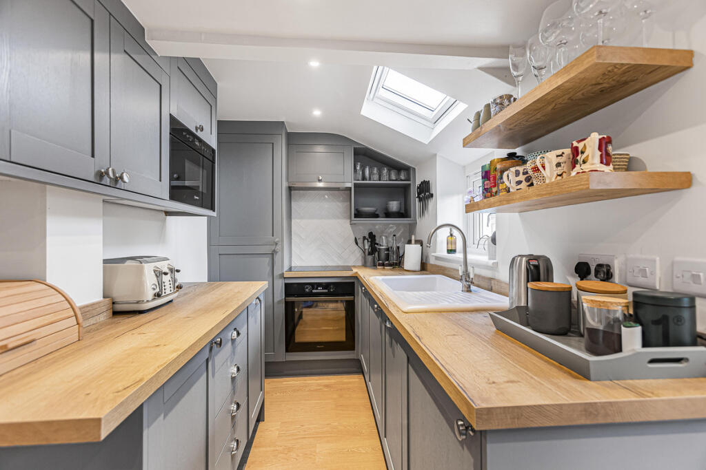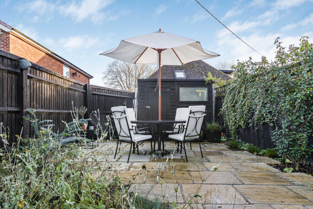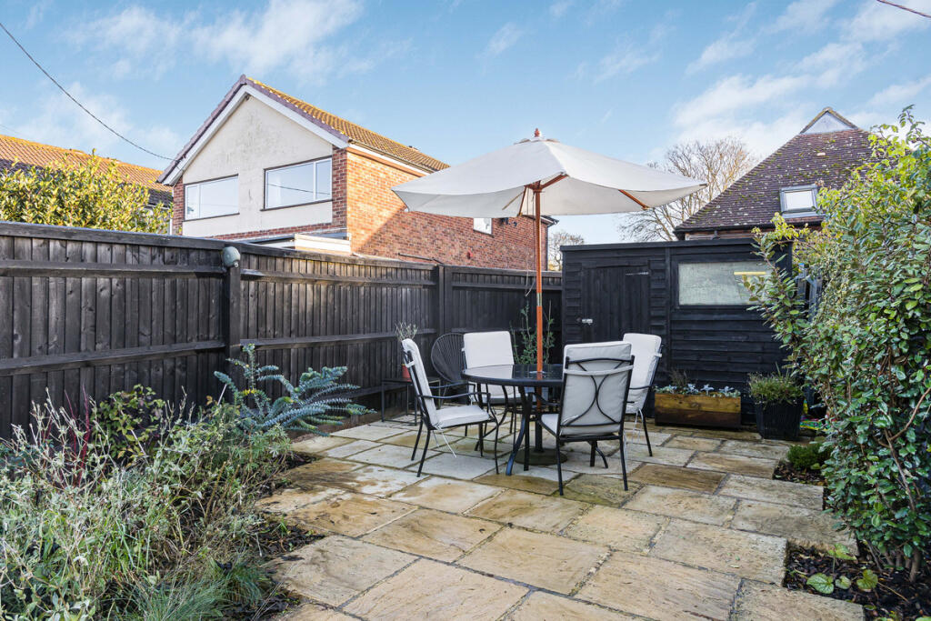 This is a charming terraced house in Wantage, Oxfordshire. The property has been modernised but retains its period character. The house is in good condition and has a modern kitchen and bathroom. The garden is a reasonable size and is paved with some planting areas. The property is located close to local schools and amenities. Overall, this is a well-presented property in a desirable location.